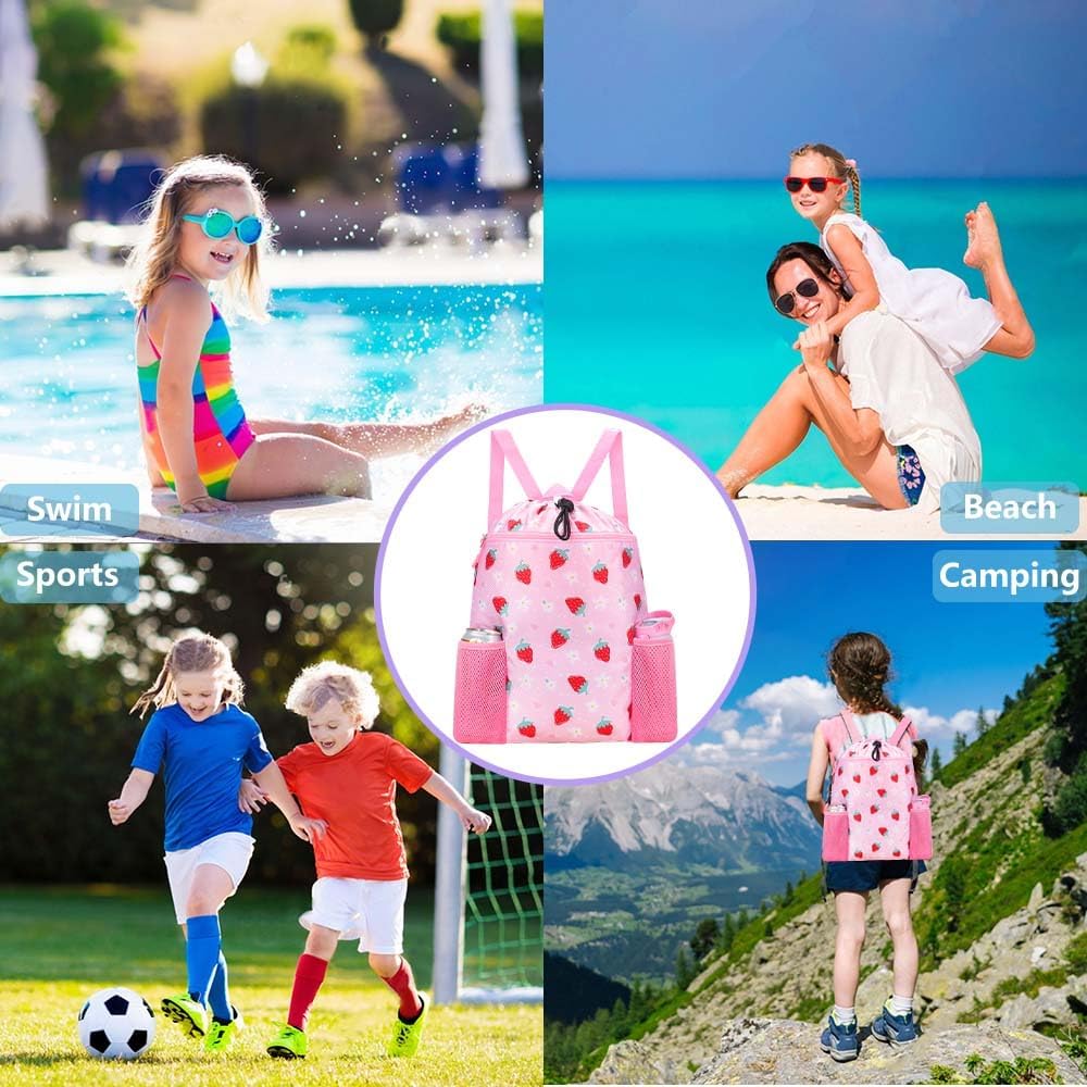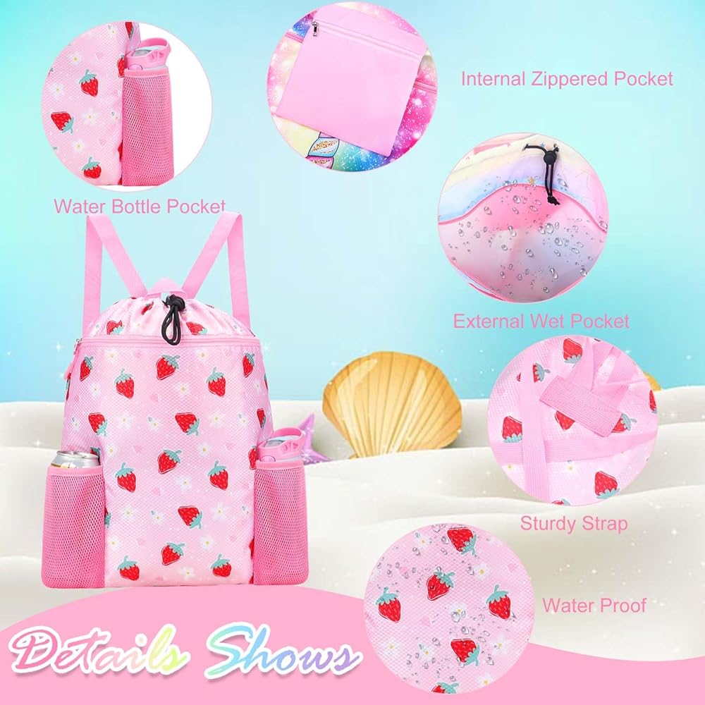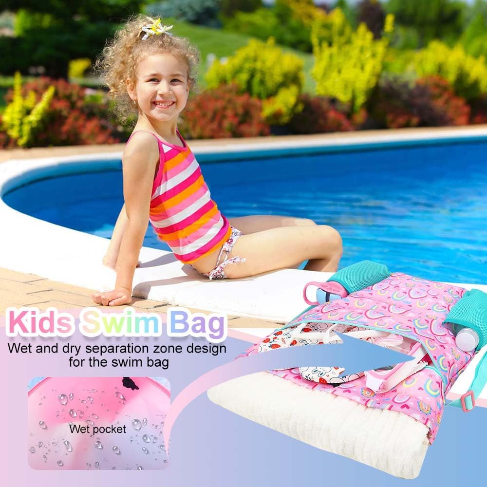حقيبة سباحة للأطفال جافة ورطبة - حقيبة السباحة للفتيات بالكامل مصنوعة من نسيج ناعم ومربع على شكل ألماس مقاوم للماء ومضاد للتجاعيد، مع مقابض معززة، وأشرطة كتف قابلة للتعديل بعرض 2.54 سم، وجيوب شبكية سميكة ومرتفعة ليست سهلة. للتمزق، مما يضمن حماية ممتازة لجميع متعلقاتك بالداخل.