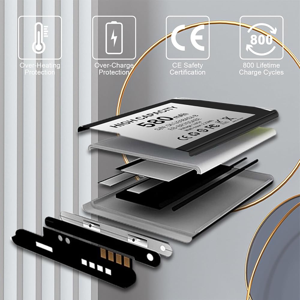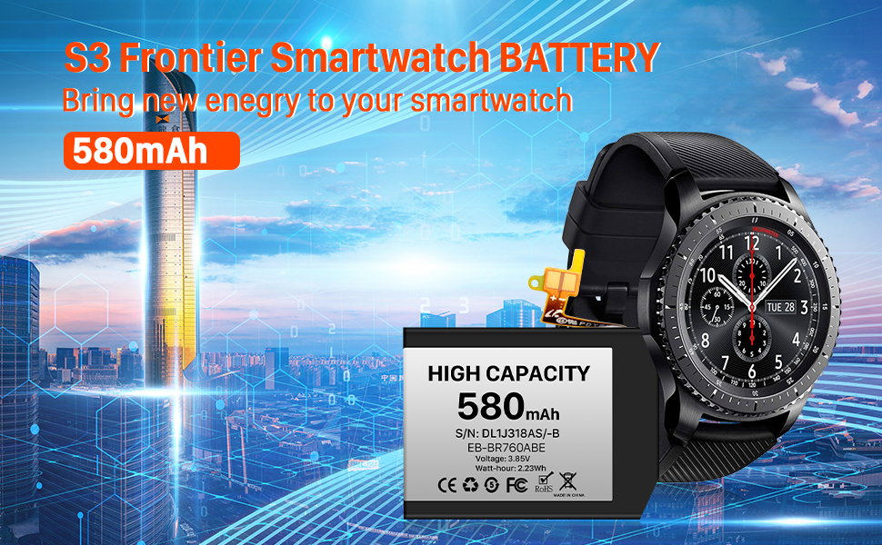 ❀【عمر بطارية طويل】: بطارية بديلة عالية السعة من Gear S3 Frontier، نوع البطارية: Li-Polyme، سعة البطارية: 580 مللي أمبير، واط/ساعة: 2.23 وات في الساعة، خرج الجهد الكهربي: 3.85 فولت. دورة 0 جديدة تمامًا، مصممة لتدوم ما يصل إلى 1200 دورة شحن لتوفير عمر بطارية أطول. أعد عمر بطارية Samsung Gear S3 Frontier إلى المجد مرة أخرى.