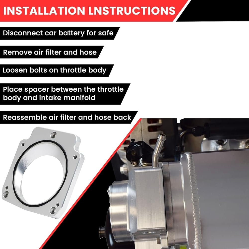 Package Includes - Throttle Body Adapter Kit will come with a adapter plate, all Bolts, and an oring seal needed for installation.