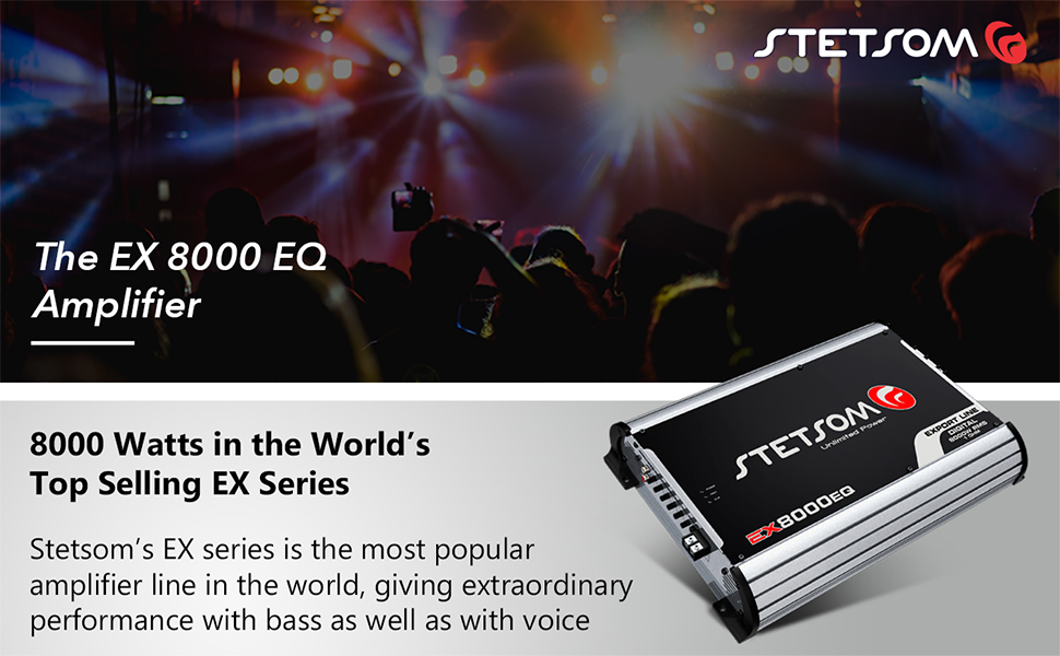 Stetsom EX 8000 EQ 1 Ohm Mono Car Audio Amplifier، 8000.1 8K Watt RMS، 1Ω مستقرة كاملة النطاق HD جودة الصوت MD Crossover HPF LPF Bass Boost مكبر صوت أمامي وخلفي