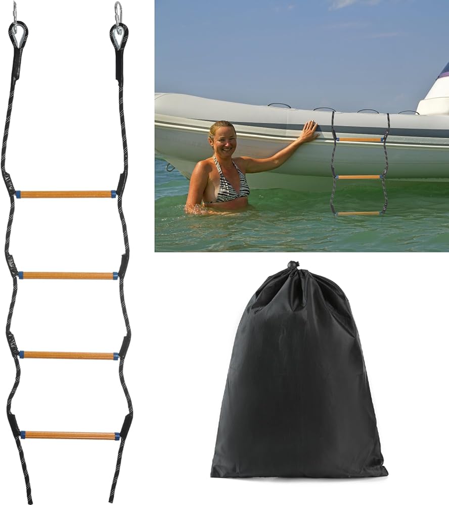 【Convenient Storage】With a total width of 35cm/13.8 inches, the boat ladder extension is small and portable, making it easy to store and carry. You can easily take the portable boat ladder to the place where you need to use it, and when not in use, the boat rope ladder can be rolled up to save space.