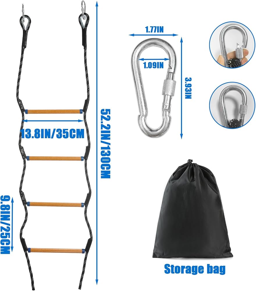 【Easy To Install】This front boat ladder is easy to install and can be installed in a variety of ways without the need for any installation tools. The ladder is equipped with 2 hooks, which can be hung on the boat or on the tree, and the safety lock ensures that the rope ladder will not fall off.