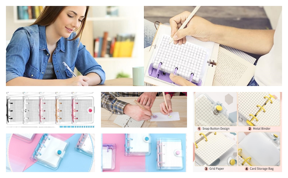 4.❤️مع 3 حلقات دائرية، يمكنك بسهولة قلب الصفحات ومنع الصفحات من السقوط. غلاف شفاف صغير لطيف يتميز بمظهر بسيط وأنيق، ومناسب لأي مناسبة.