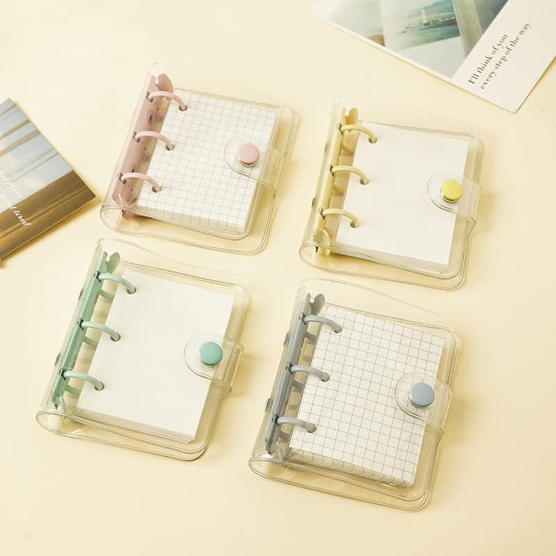 4 عبوات من أغطية مجلدات صغيرة شفافة مكونة من 3 حلقات شفافة من مادة PVC لدفاتر الملاحظات الفضفاضة وواقي حلقة مستديرة مع جيوب صغيرة للملفات مع 320 ورقة أوراق داخلية فارغة و80 ورقة لكل دفتر ملاحظات