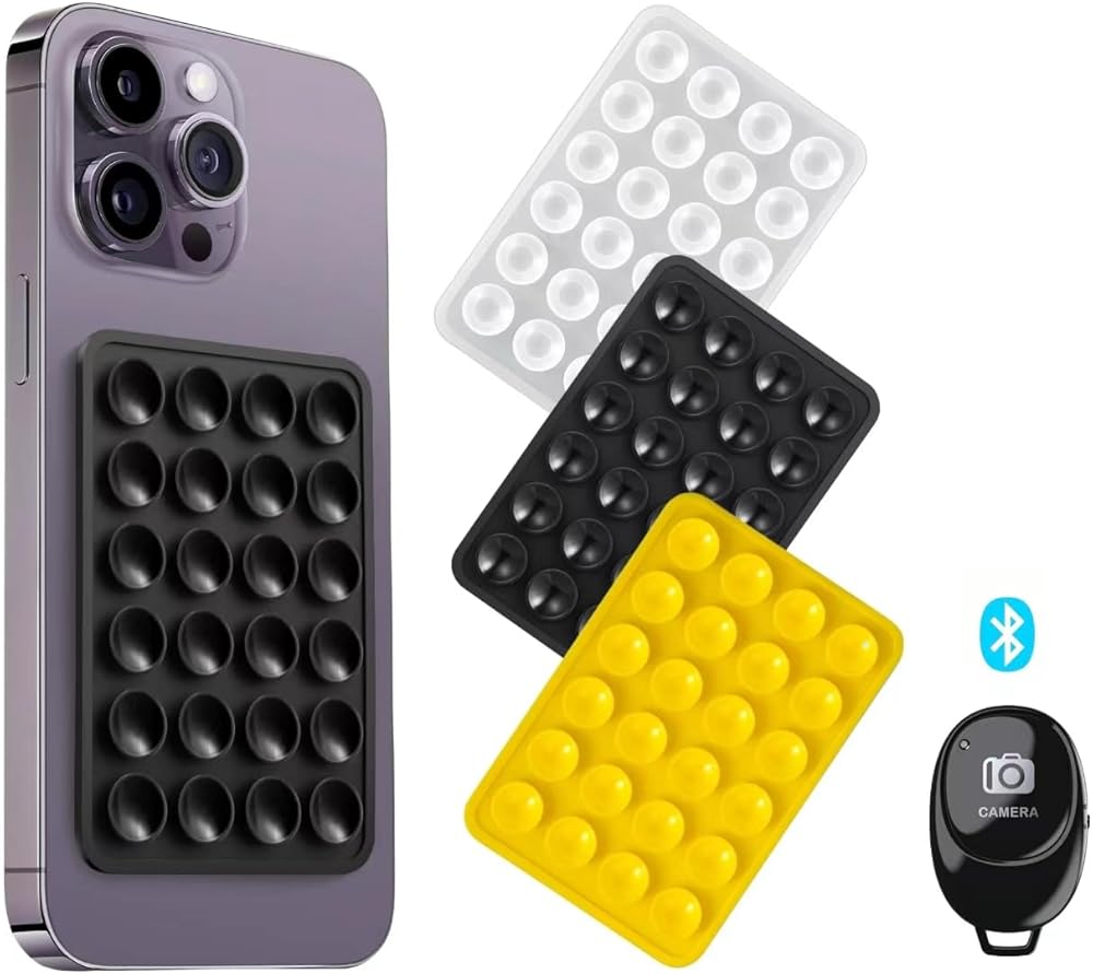 أداتان صغيرتان مفيدتان►24 كوب شفط يمسكان المرايا والنوافذ وأي سطح أملس للحصول على فيديو ثابت بدون استخدام اليدين وصور سيلفي مع هاتفك الذكي الأكبر حجمًا. كما أن جهاز التحكم عن بعد الذي يعمل بتقنية Bluetooth يجعل من السهل التقاط صور سيلفي ولقطات جماعية وثابتة بدون استخدام اليدين!