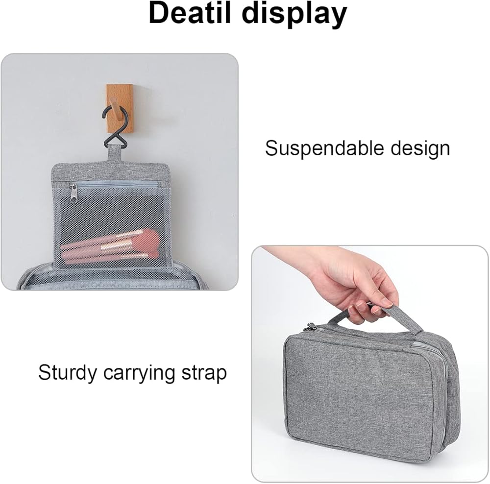 • 4. جميل وعملي: يحتوي المنتج على مجموعة متنوعة من الألوان، والتي يمكن أن تتناسب بشكل أفضل مع ذوقك وبسيط وأنيق. لا يمكن لحقيبة مستحضرات التجميل متعددة الوظائف تخزين مستحضرات التجميل فحسب، بل يمكنك أيضًا تخزين مستحضرات التجميل ومنتجات العناية بالبشرة. يمكن للخطافات المدمجة تعليق حقيبة أدوات الزينة على رف المناشف أو خطاف المعطف أو أي مكان متاح، مما يجعل من السهل الوصول إليها وتوفير مساحة المنضدة.