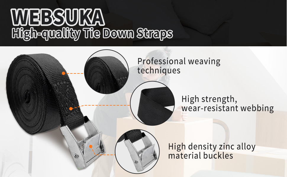 【آمنة وسهلة الاستخدام】توفر أحزمة الربط الخاصة بنا المزودة بإبزيم الكاميرا طريقة موثوقة وخالية من المتاعب لتأمين حمولتك أثناء النقل، مما يضمن راحة البال. سهلة التشغيل والحمل، يمكنها بسهولة حل مشكلة التناثر. بضائع!