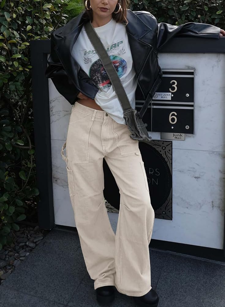 سراويل كارجو للنساء: تتميز هذه السراويل الخالدة بارتفاع متوسط، وقصة فضفاضة وخصر مطاطي خلفي لسهولة الاستخدام. أنيق مع جزء علوي أنبوبي أو مريح مع تي شيرت قصير بسيط، هذا الزوج لديه طرق لا حصر لها للارتداء.