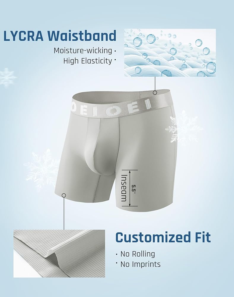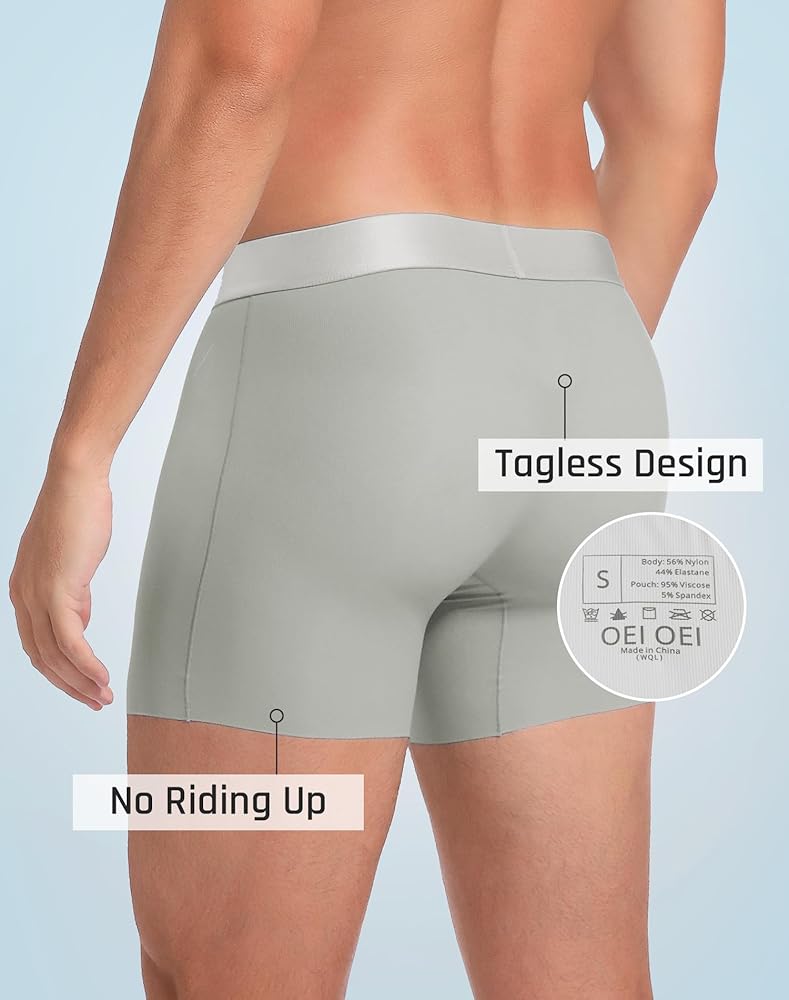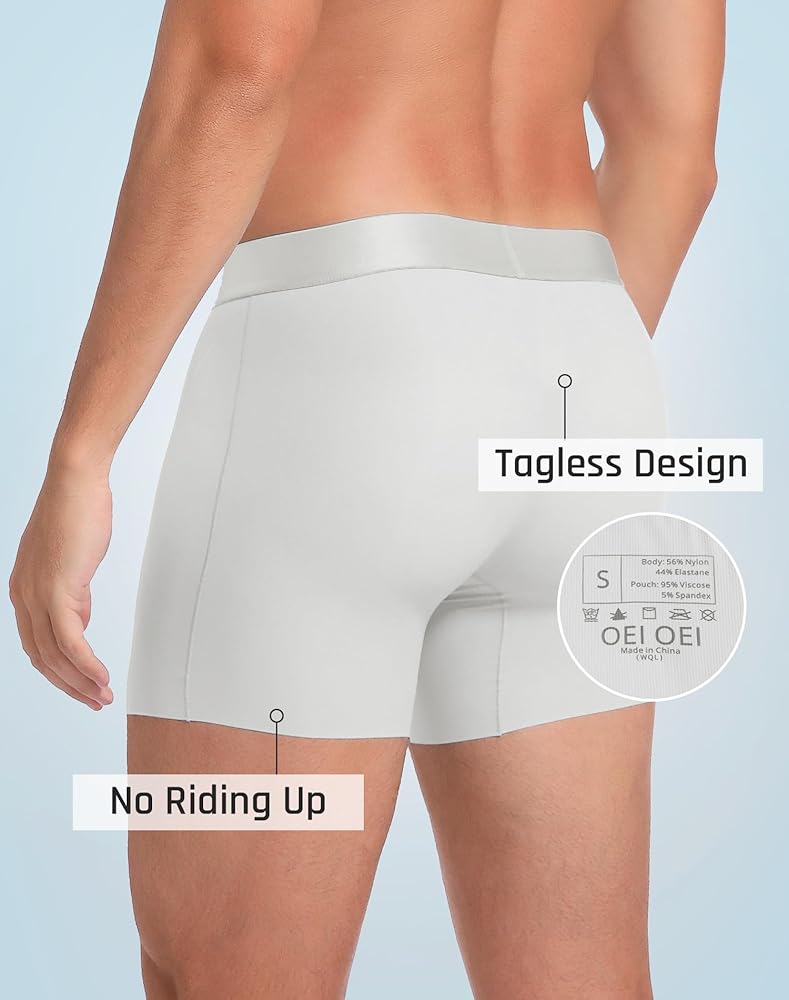 تصميم كيس التبريد: توفر المساحة الواسعة بين الرجلين لهذه السراويل الداخلية للرجال استرخاءً مستمرًا لسيناريوهات مختلفة مثل الأنشطة اليومية أو الرياضة. المنشعب للملابس الداخلية الرجالية OIEOEI مصنوع من نسيج بروتين الحرير ويوفر امتصاصًا ممتازًا للرطوبة. تحافظ هذه السراويل الداخلية المصنوعة من النايلون للرجال أيضًا على المنطقة الحميمة جافة ومريحة طوال اليوم