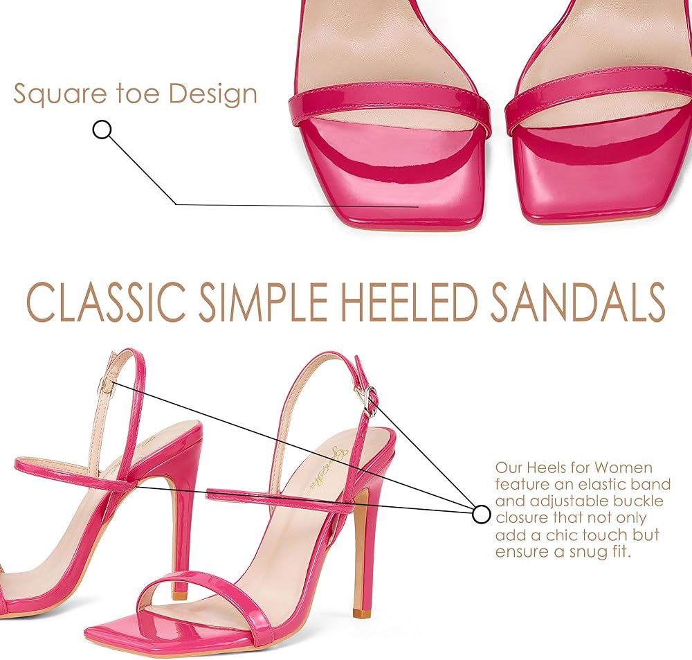 تصميم بسيط: شريطان رفيعان مع حزام للكاحل وتصميم مربع مفتوح عند الأصابع بسيطان ولكنهما لا يصبحان قديمين أبدًا، ويجعلانك مريحة في الارتداء والخلع. التصميم ذو الكعب العالي سيجعلك ساحرًا في كل مكان.