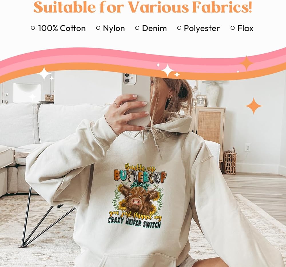 • الاستخدام الشامل: لا يمكن طباعة المكواة على الملصقات الخاصة بنا على القمصان والفساتين والقمصان والتنانير والسترات والجينز والحقائب والملابس الرياضية فحسب، بل يمكنها أيضًا طباعة قبعاتك أو الأوشحة أو الألحفة أو ملاءات السرير أو أغطية الوسائد أو في مكان ما مثل إضافة المزيد من الألوان إلى حياتك اليومية.