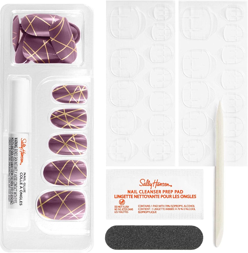 Bring home the salon with Sally Hansen Salon Effects® Perfect Manicure! Elevate your look with flawless, ready to wear nails. With Sally Hansen Salon Effects® Perfect Manicure you don't need to be born with beautiful nails to have them! Premium, natural looking nails, curated with on-trend nail designs, classic Sally Hansen colors and desirable nail lengths. Packaged in a unique 'try me on' carton and comes complete with 24 nails, nail file, wooden stick, prep pad, adhesive tabs and nail glue.