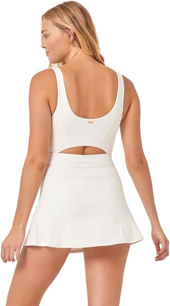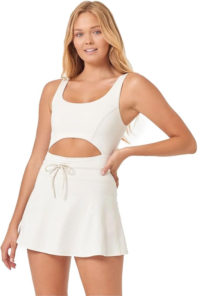 Show-off some skin and show-off your moves in the Patterson Dress. With a flattering, adjustable tie-waist and figure-defining cut-outs, this skort dress is a must for your work-out wardrobe.