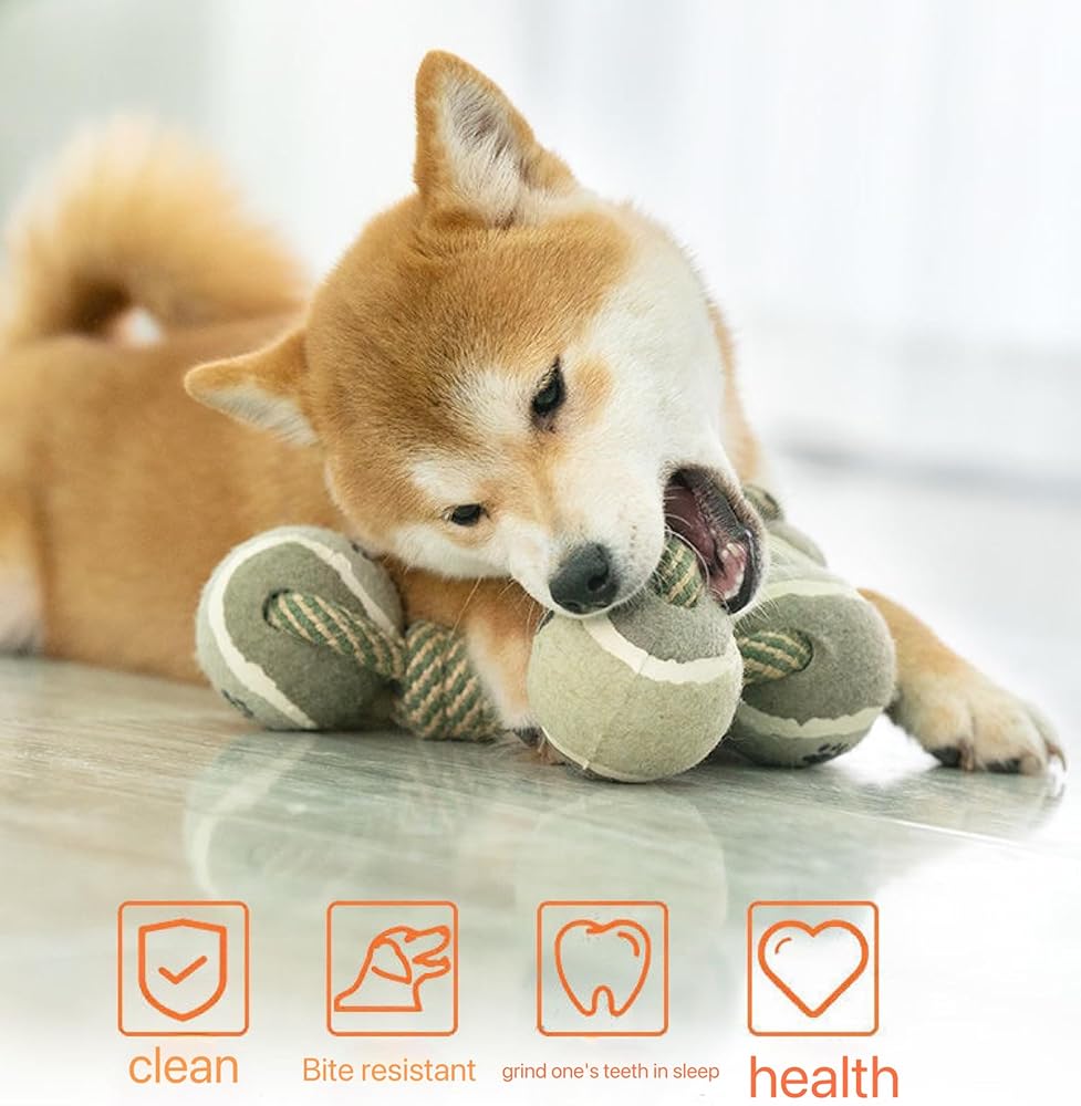 • HEAVY DUTY ROPE TOYS FOR AGGRESSIVE CHEWERS: Durable dog toys are made of high-quality natural cotton, which is wear-resistant. The tightly woven knots and elastic tennis balls allow large dog toys to withstand strong chewing.