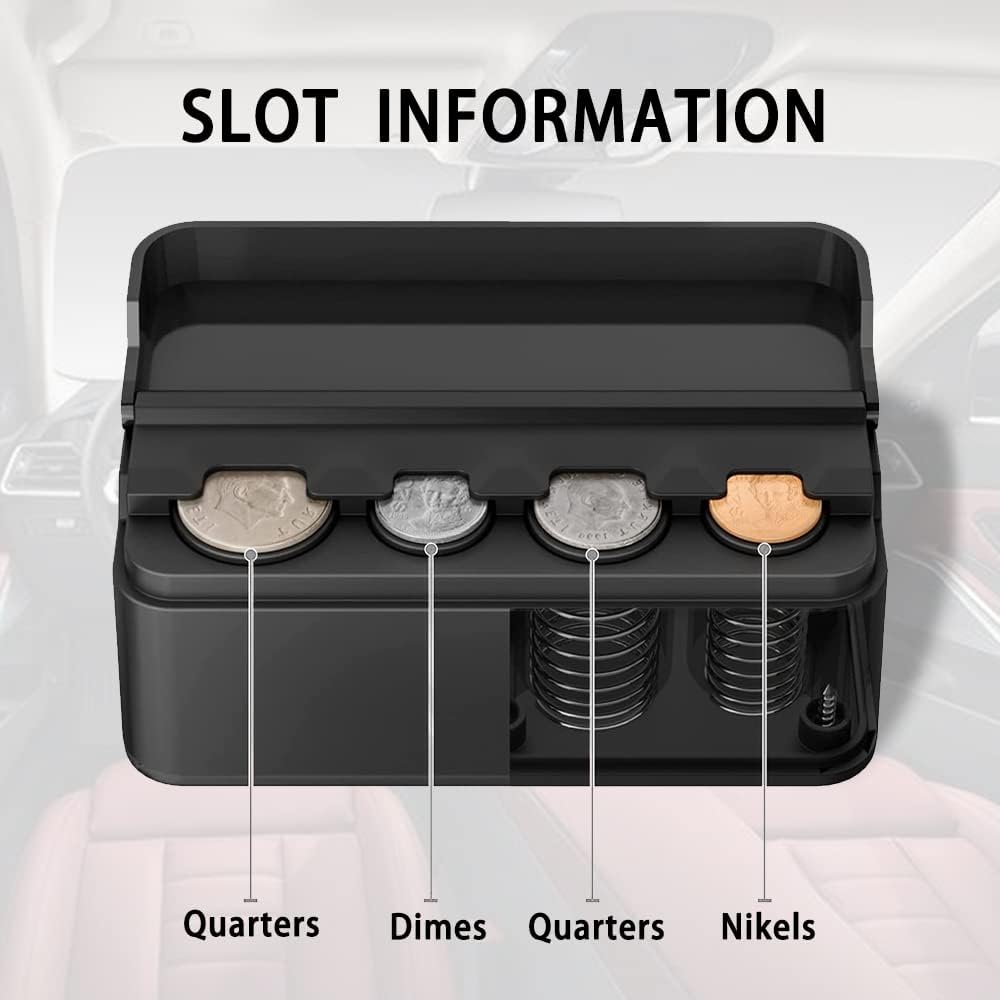 [Easy to use] : It has 4 slots for storing coins of different sizes. The car coin holder can hold coins of three different sizes:1 dollar, 25 cents and 1 cent respectively.