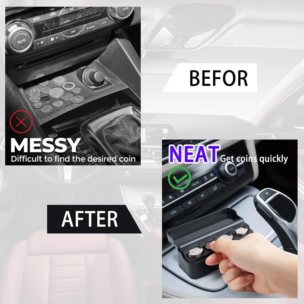 [Versatility]: Car coin storage, small change storage box, used to store coins.The coin box storage box can not only store coins so that you can find change faster, but also clean up the mess in the car / Office / home.This is an excellent accessory for your car and an ideal gift for your relatives.