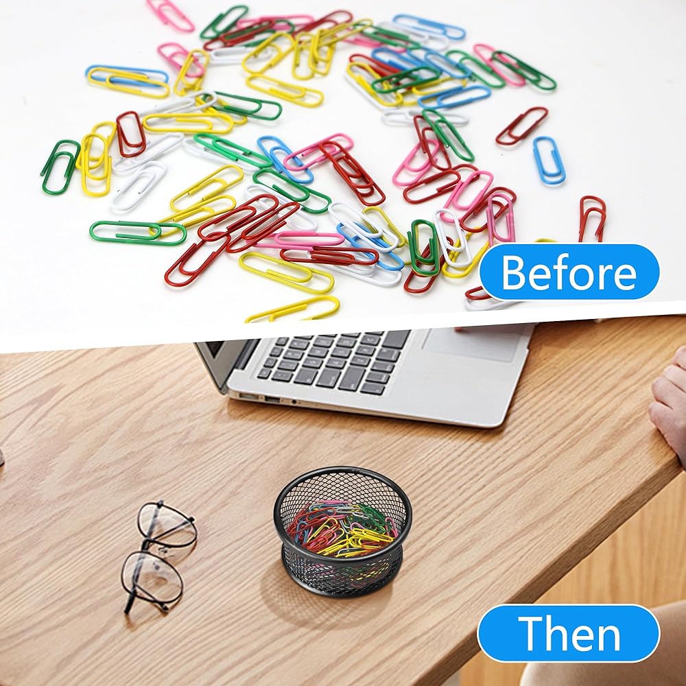• 【MATERIAL】- VOur desk paper clip holder is made of durable and sturdy black painted wire mesh bowls. The paper clip holder material has been upgraded for stronger anti drop ability. The classic and simple design and elegant industrial appearance will bring an elegant appearance to your office, making your desk better.