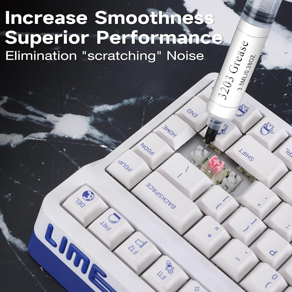 تشحيم لوحة المفاتيح: Tribosys 3203 Lubricant تم تحسين مادة التشحيم عالية اللزوجة هذه لإسكات مثبتات لوحة المفاتيح وتأتي في حقنة مل مريحة تناسب داخل المثبت الخاص بك. كمية التشحيم حوالي 280 مفتاحًا أو أكثر