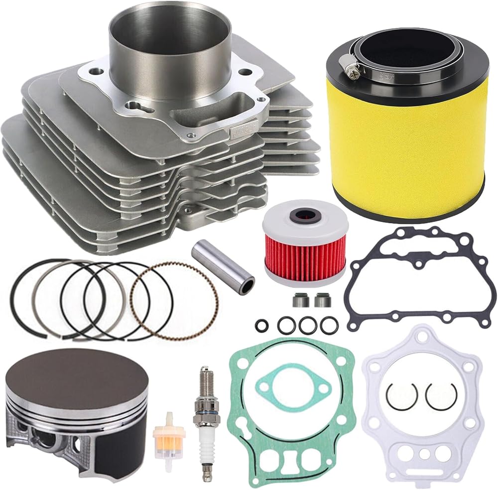 Package Includes: 1x Cylinder , 1x Piston(Std) , 1x Piston Ring Set , 1x Wristpin 1x Circlip(2) , 1x Cylinder Base Gasket , 1x Cylinder Head Gasket , 1x Cylinder Head Cover Gasket , 1x Air Filter 1x Fuel Filter , 1x Oil Filter , 1x Spark Plug