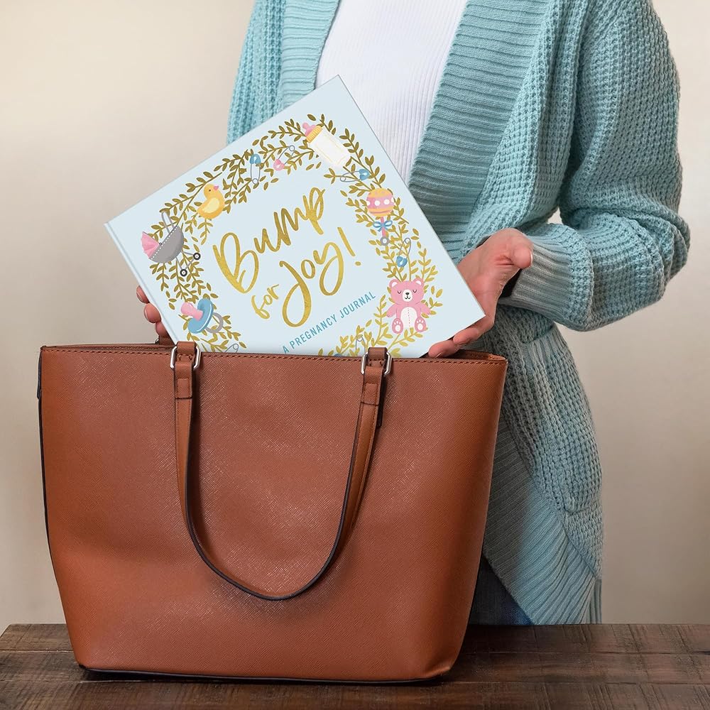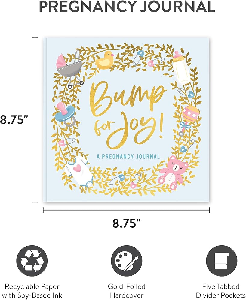The Bump for Joy guided journal book has 144 pages and measures 9.125" x 8.75" x 0.625".