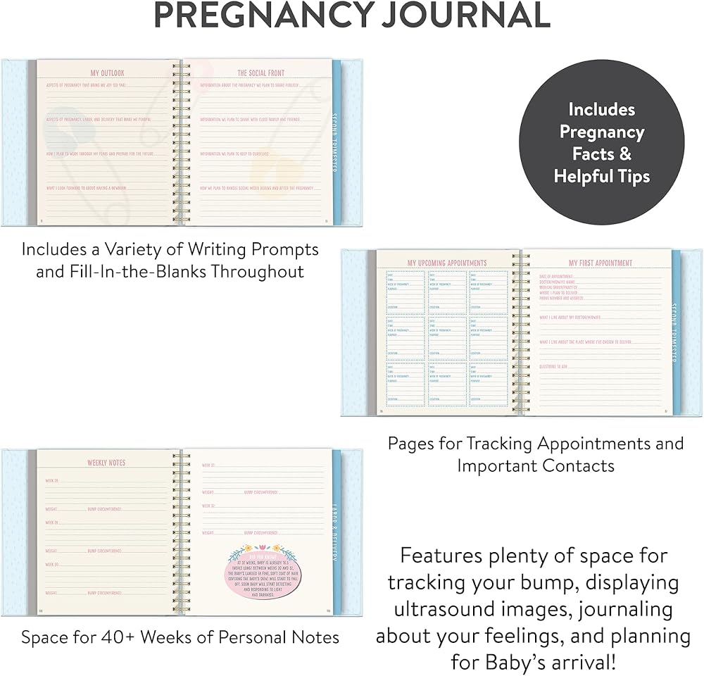 Our keepsake maternity book has 5 storage pockets, room for 32 photos & space for 40 weeks of notes.