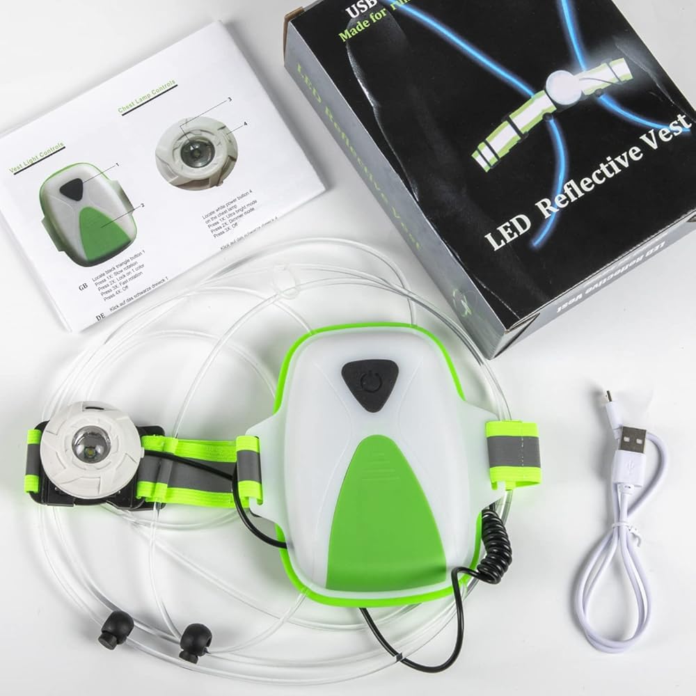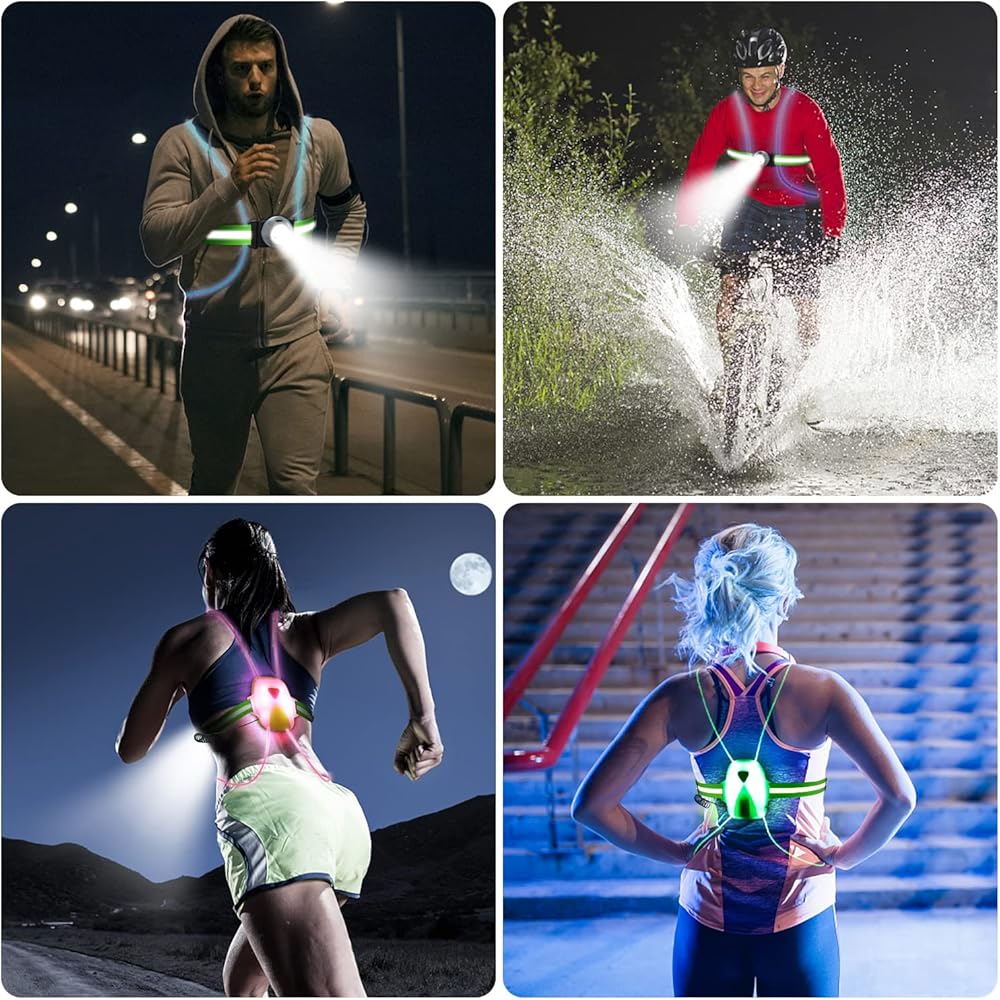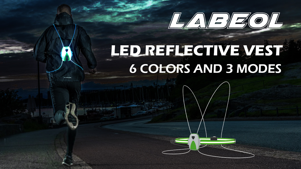 سترة جري عاكسة للضوء من Labeol مع ضوء أمان أمامي عالي الوضوح، 6 أضواء بألوان زاهية للعدائين، ملحقات عاكسة قابلة لإعادة الشحن عبر USB للرجال والنساء والجري والمشي وركوب الدراجات
