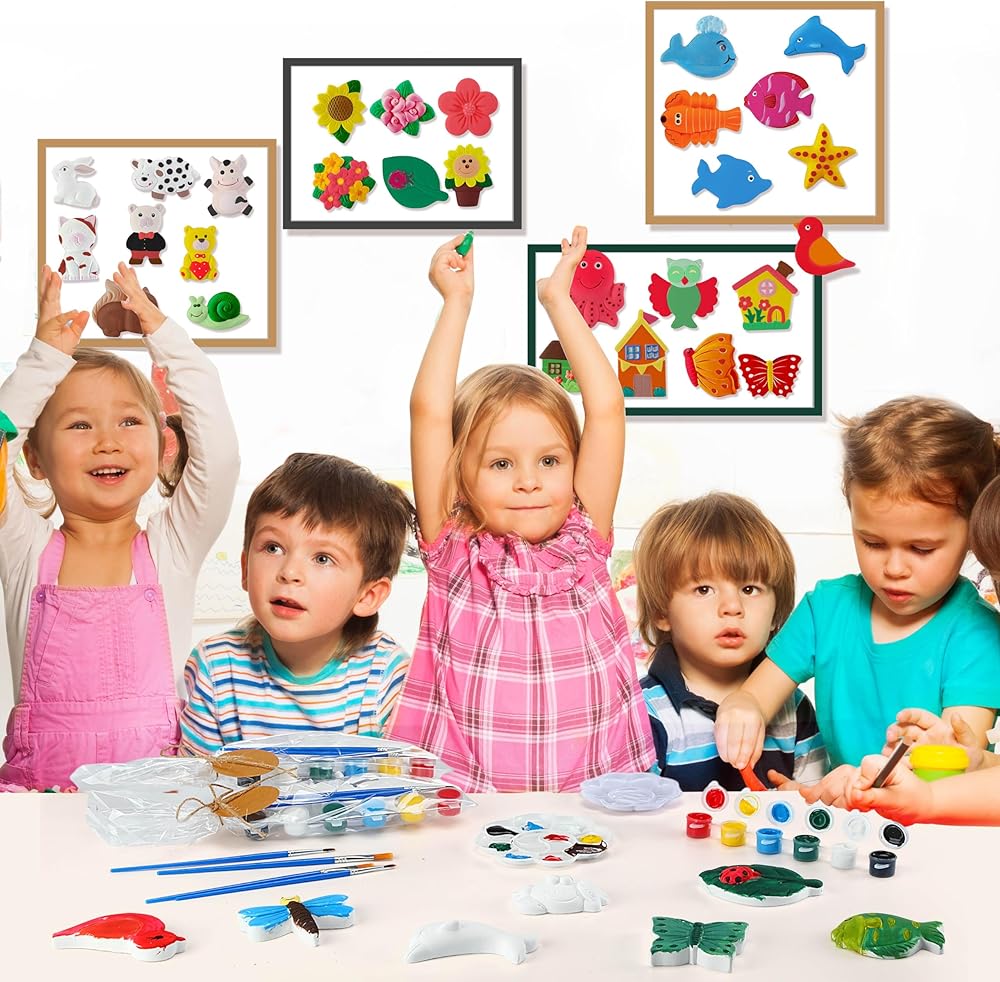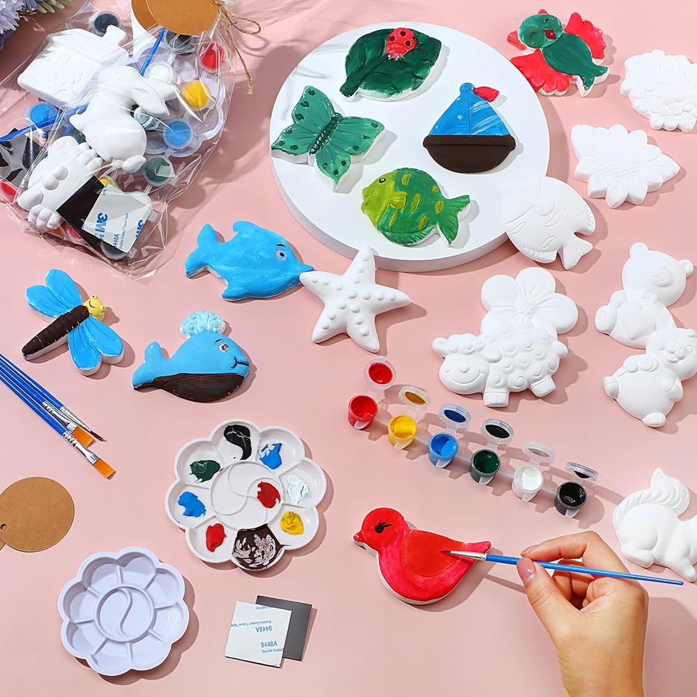 These paintable figurines allow kids to make different color matching, and create their own art crafts, bringing endless fun while developing creative thinking and imagination.