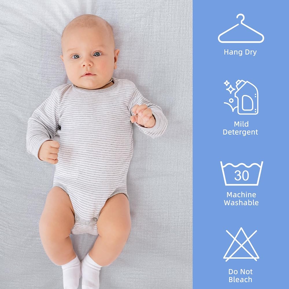 Our fitted sheets provide exceptional breathability, allowing your baby to breathe easily through the fabric. You can have peace of mind knowing that your baby is sleeping in a safe and comfortable environment. The pre-shrunk organic cotton fabric is not only breathable but also machine washable, making it easy to maintain a clean and hygienic sleeping surface.