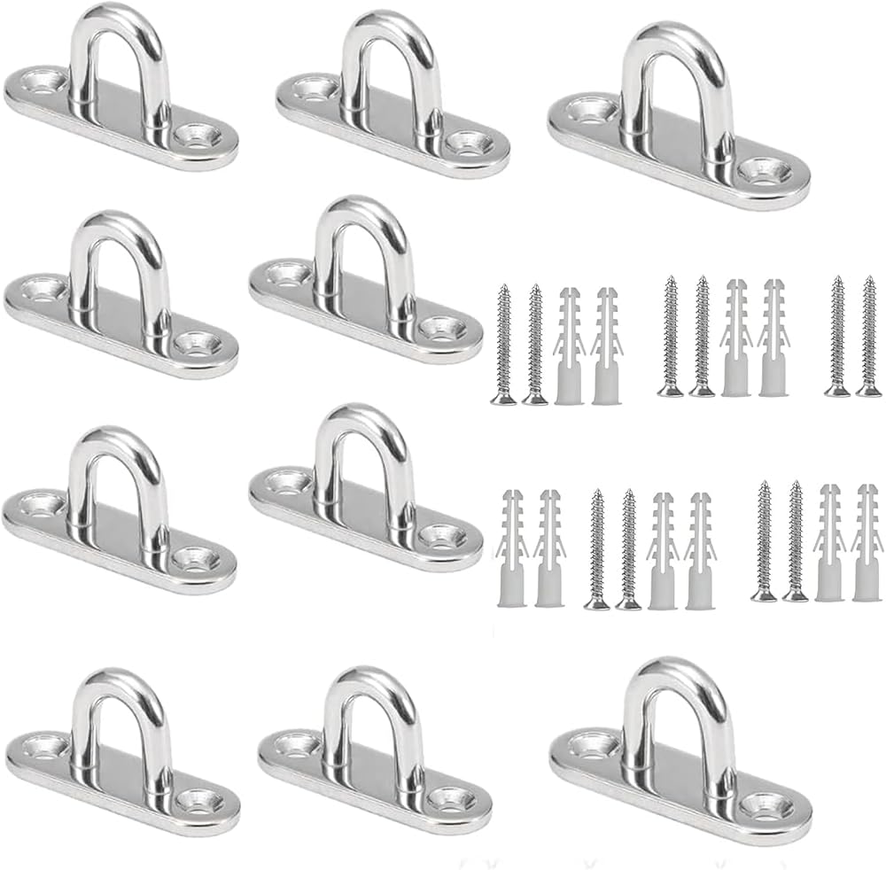 تشمل العبوة: 10 قطع خطاف سقف من الفولاذ المقاوم للصدأ M5 مع 10 قطع براغي و10 قطع مثبتات بلاستيكية مضلعة