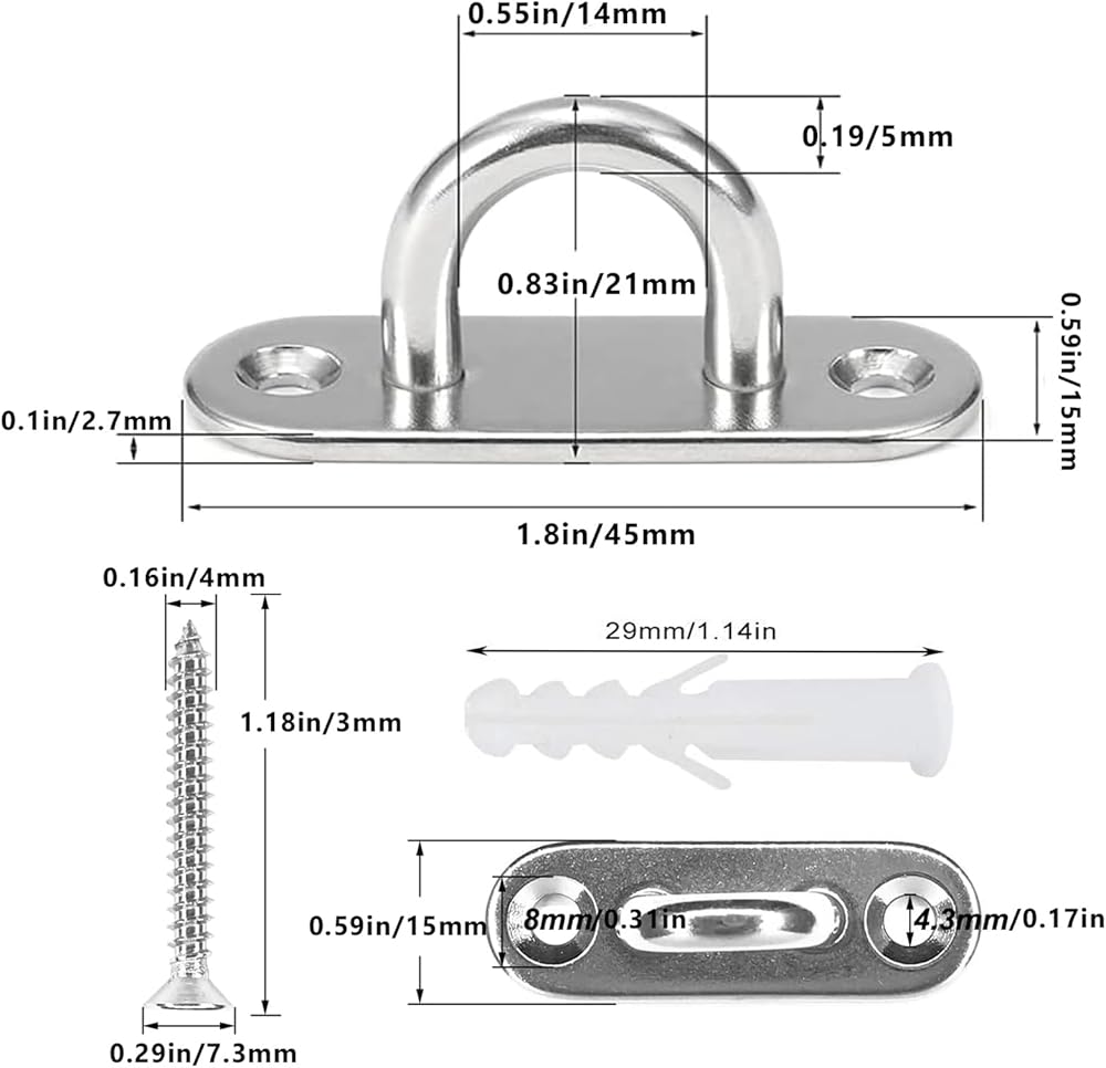 مادة فاخرة: خطافات لوحة العين على شكل حرف U مصنوعة من الفولاذ المقاوم للصدأ عالي الجودة، وسطح أملس بدون نتوءات، ومقاوم للتآكل، ومتين