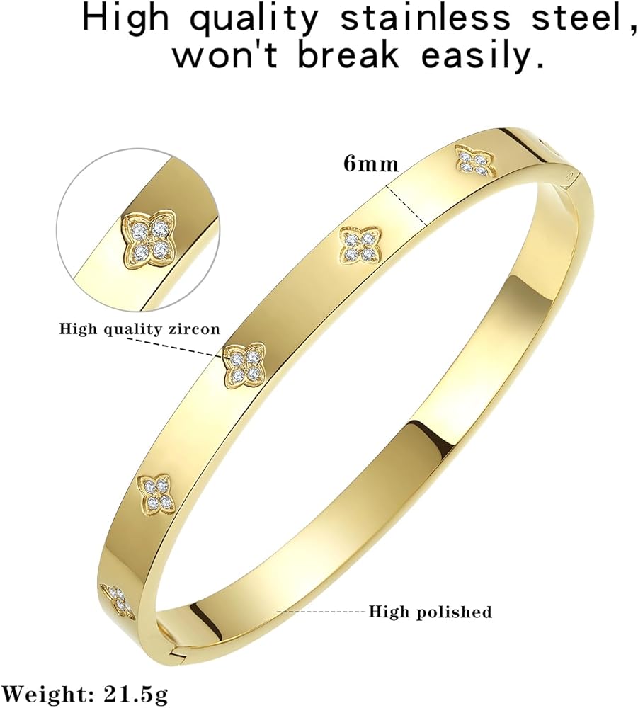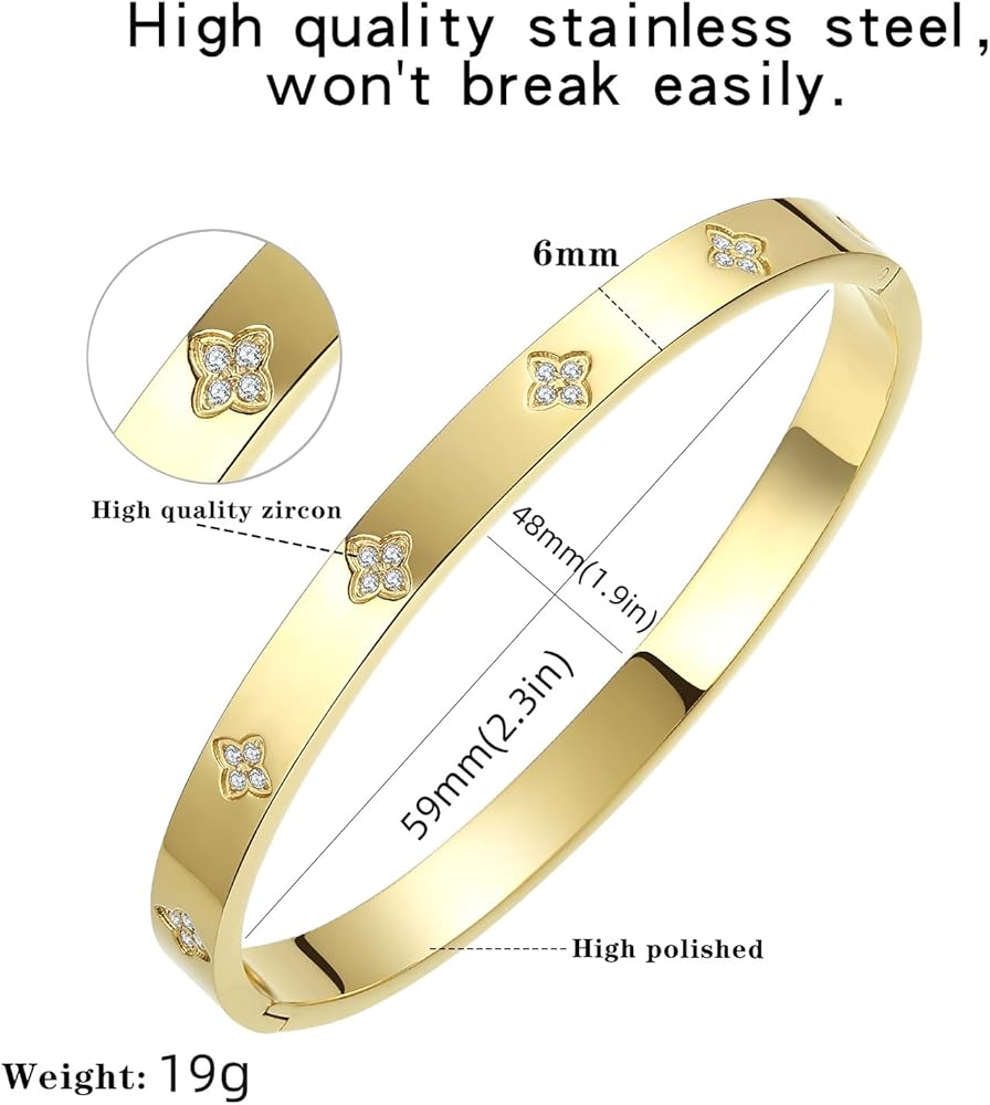 • مادة متينة: سوار Clover Love مصنوع من الفولاذ المقاوم للصدأ عالي الجودة و5A+ زركونيا مكعب لامع، جيد للبشرة الحساسة.