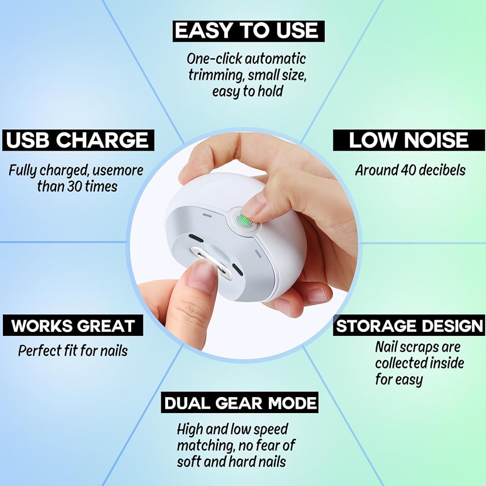 مناسبة لجميع الفئات العمرية - ماكينة قص الأظافر الكهربائية البسيطة تجعلها مناسبة للأطفال وكبار السن. خذها إليهم واستخدمها، وسوف تتفاجأ بمدى سهولة تقليم أظافرهم بأنفسهم، دون الحاجة إلى أدوات مساعدة.