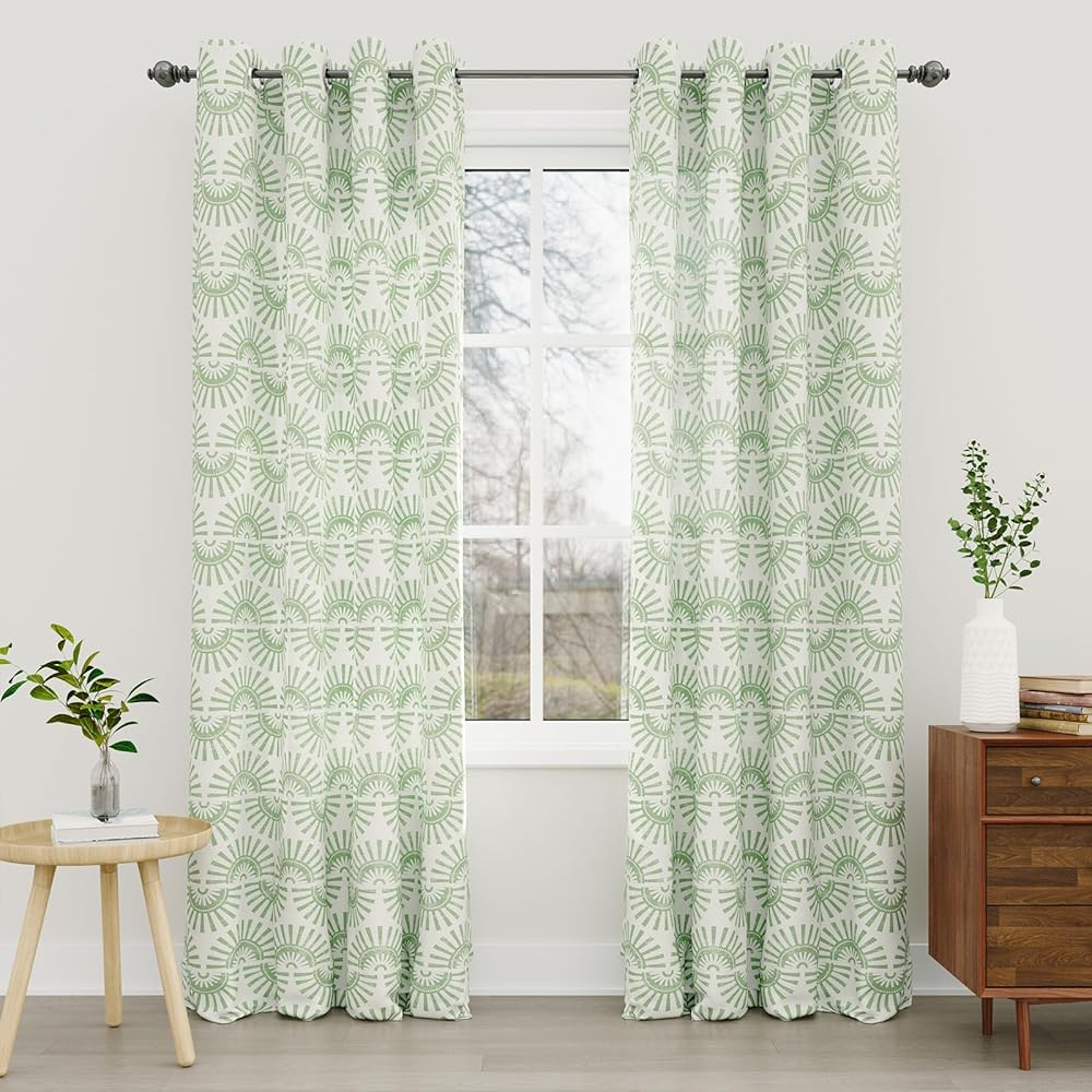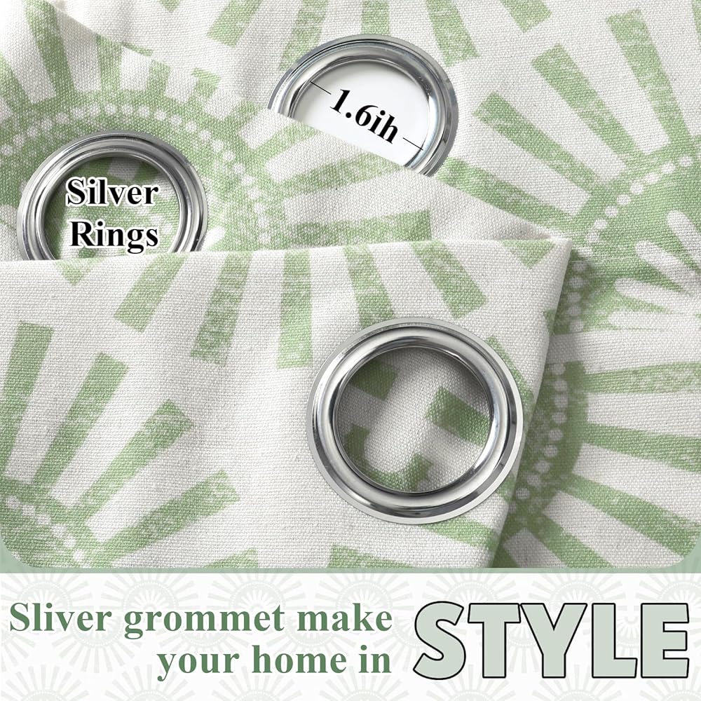 الحجم والحزمة: تتضمن حزمة ستائر النافذة الكتانية هذه ستارة بوهو لوحتين. يبلغ مقاس كل ستارة منقوشة 52 بوصة عرضًا × 84 بوصة طولاً (132 × 213 سم) وتحتوي على 8 حلقات فضية في الجزء العلوي من لوحة الستارة، كل منها بقطر داخلي 1.6 بوصة، سهلة التعليق والتحريك.