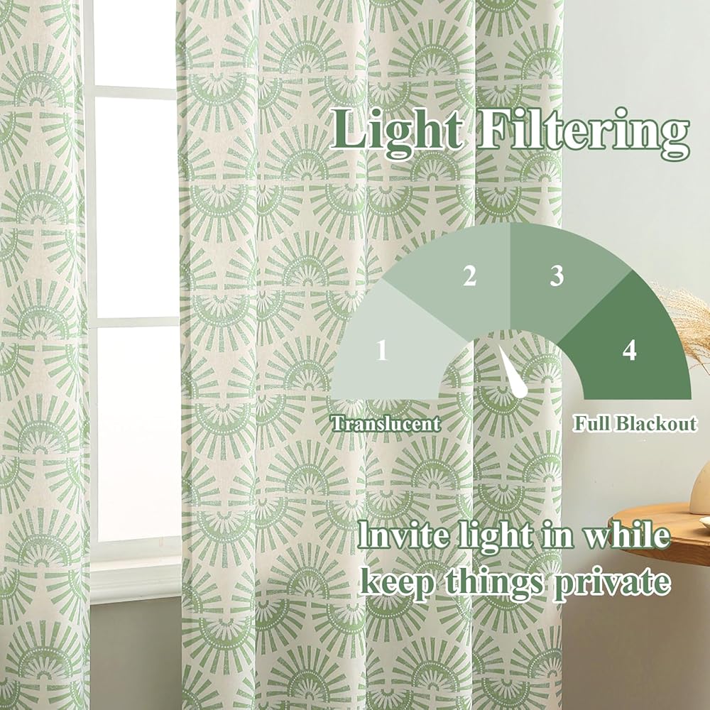 نسيج الكتان الطبيعي: ستائر Roxooze البوهيمية مصنوعة من مزيج الكتان الطبيعي، مما يعطي الستائر مظهرًا طبيعيًا مع ثنية وجمال، بينما تسمح أيضًا بتدوير الهواء للحفاظ على برودة الغرفة بيئيًا وصحيًا وقويًا. آمنة وخضراء للأطفال والحضانات