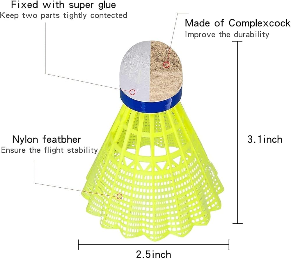 مادة الريشة: ريشة نايلون. يوفر ريش النايلون المتانة بعد الضربات المتكررة عبر الشبكة