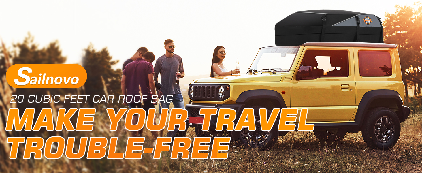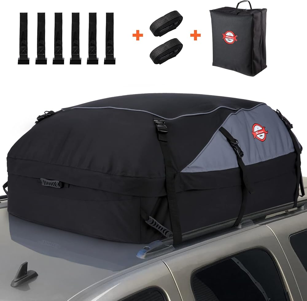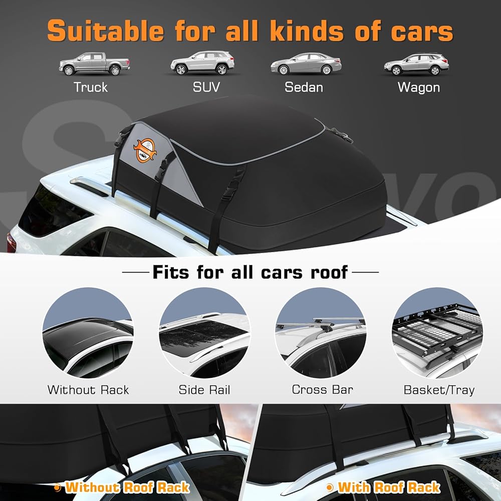 حقيبة سقف سيارة مقاومة للماء من سيلنوفو مع حامل بضائع بطول 20 قدم مكعب، وحقيبة أمتعة على سطح السيارة ذات هيكل ناعم للمركبات مع/بدون رفوف سقف، تتضمن 6 خطافات للأبواب، وحزامين طويلين، وحقيبة تخزين واحدة
