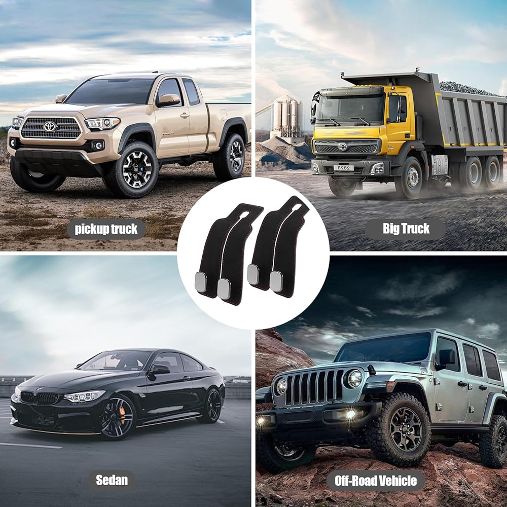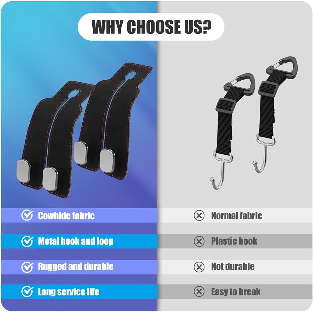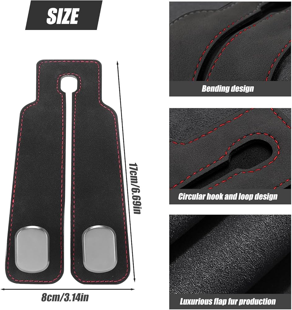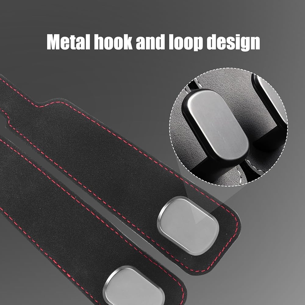 The car headrest hooks are made of high quality tumbled leather and metal, which is tough and won't break, ensuring durability and stylish appearance.