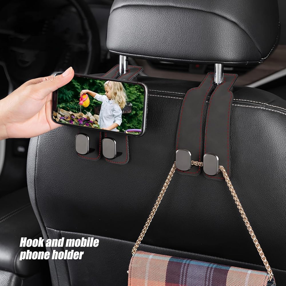🚗[Bag Hanging and Phone Stand] -These car seat back hooks offer a convenient solution for hanging bags or acting as a phone stand. Keep your belongings within reach and enjoy hands-free phone access during your travels.
