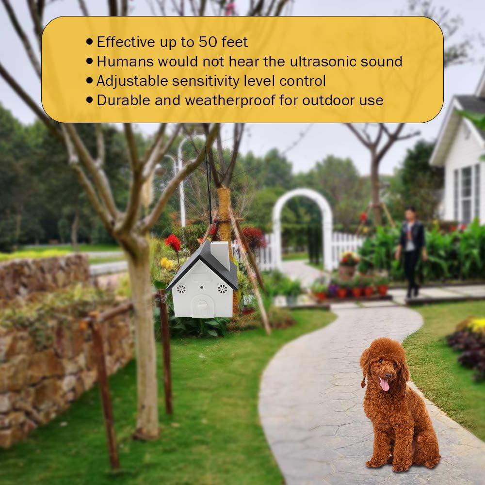 🐕50-inch Effective Range: Outdoor Bark Control is automatically activated when it detects barks up to 50 feet away. Can be hung on a tree, indoor, outdoor wall or fence post to stop dogs barking.