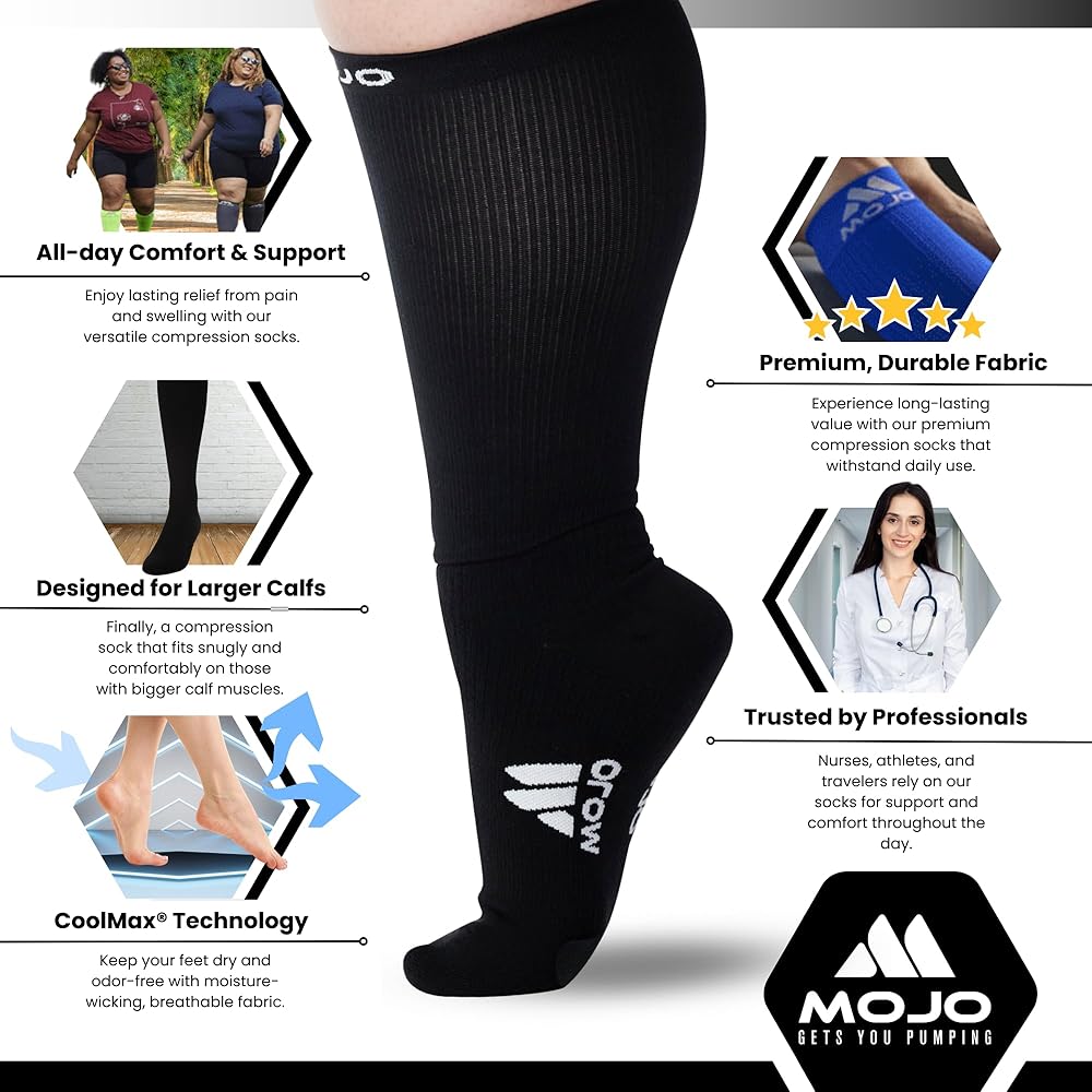 سهولة العناية وضمان الرضا: جوارب Mojo Coolmax الضاغطة قابلة للغسل في الغسالة وآمنة للاستخدام في المجفف، مما يضمن صيانة خالية من المتاعب. نحن نلتزم بجودة منتجاتنا ونقدم ضمان الرضا لراحة بالك.