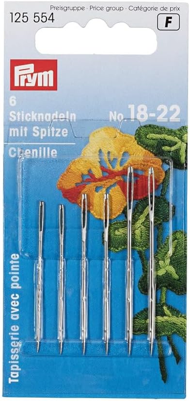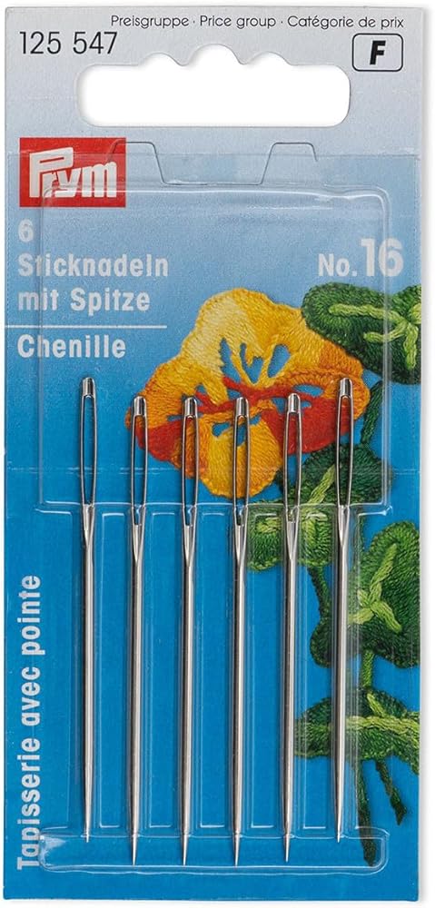 Chenille embroidery needles with a sharp point are suitable primarily for silk embroidery and all fine embroidery. The needles are made of absolutely burr-free hardened steel and have a symmetrically punched eye. For easy threading of wool or thicker yarns embroidery needles need a correspondingly large eye. The finely honed tip and the smooth coated surface of the needles allow them to glide effortlessly through any material. A balanced ratio of length and strength gives the needles their good use flexibility.
