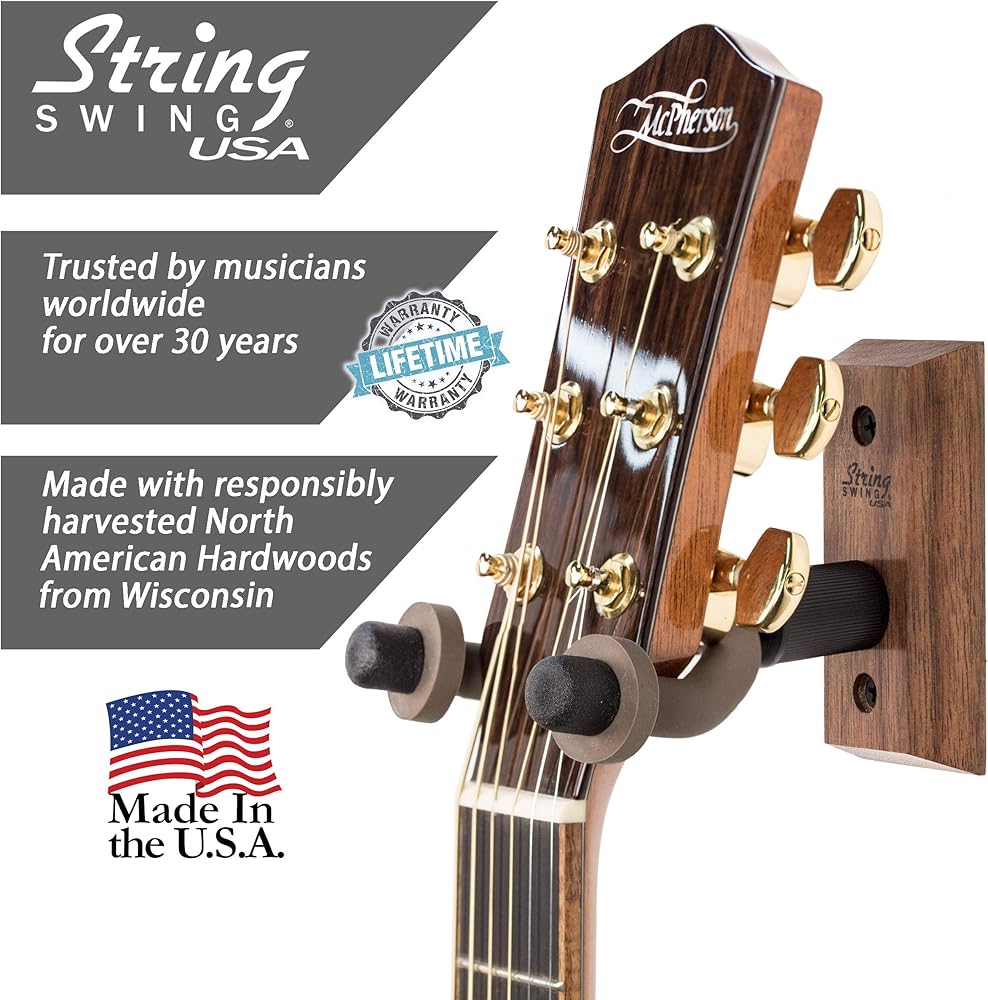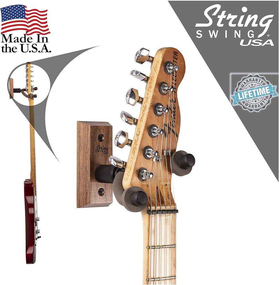 علاقة جيتار String Swing CC01-BW من الخشب الصلب للمنزل والاستوديو مثبتة على الحائط - الجوز الأسود