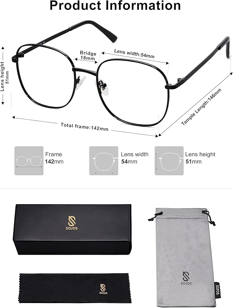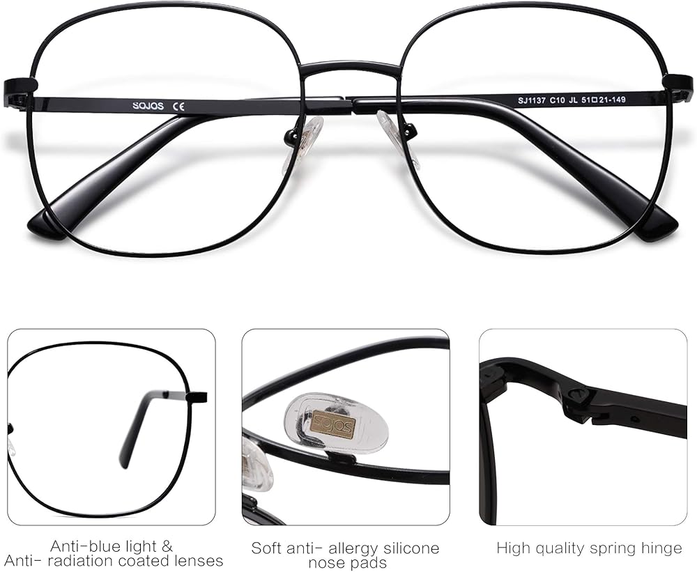 مواد عالية الجودة - نظارات SojoS الدائرية المربعة الزرقاء لحجب الضوء مصنوعة من إطارات معدنية معززة من الفولاذ المقاوم للصدأ، وعدسات مضادة للضوء الأزرق، ووسادات أنف من السيليكون الناعم، ومفصلات معدنية صلبة. جميع تفاصيل الجودة ستضمن لك تجربة ارتداء مثالية.