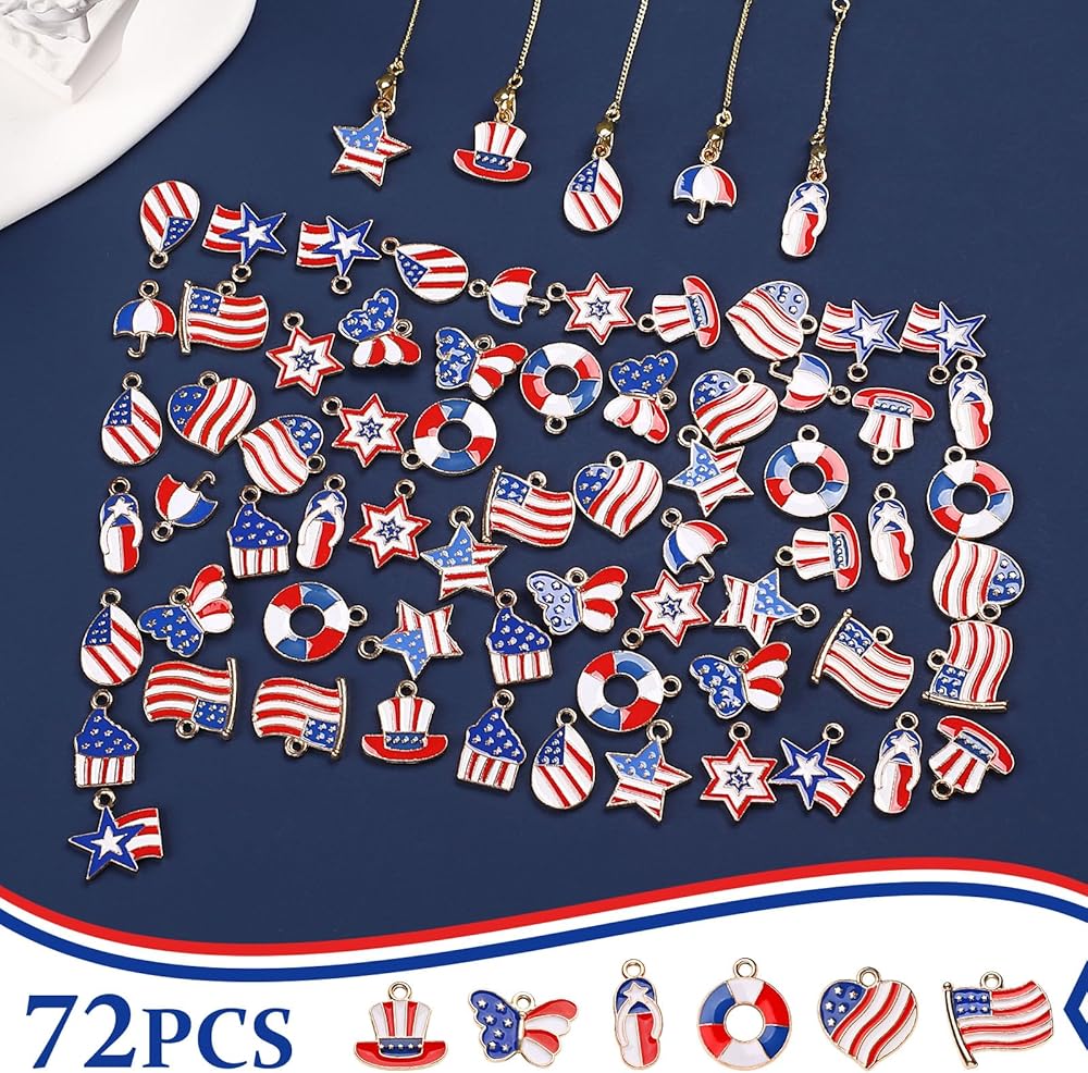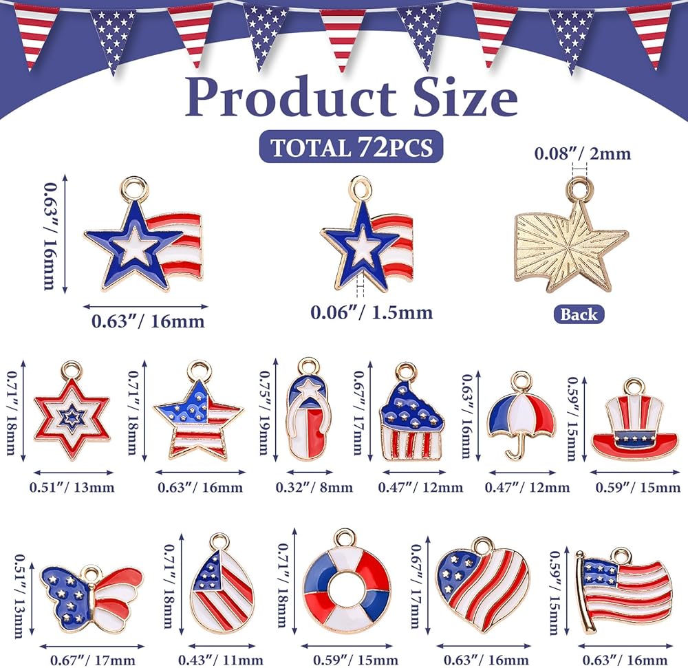 noverlife 72pcs 12 أنماط سحر العلم الأمريكي، سحر المينا نجمة العلم الوطني الأمريكي، يوم الاستقلال صنع المجوهرات المعلقات 4th من يوليو العلم استرخى سحر معدني لأقراط قلادة سوار DIY