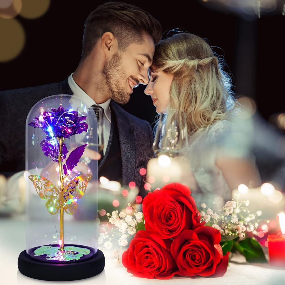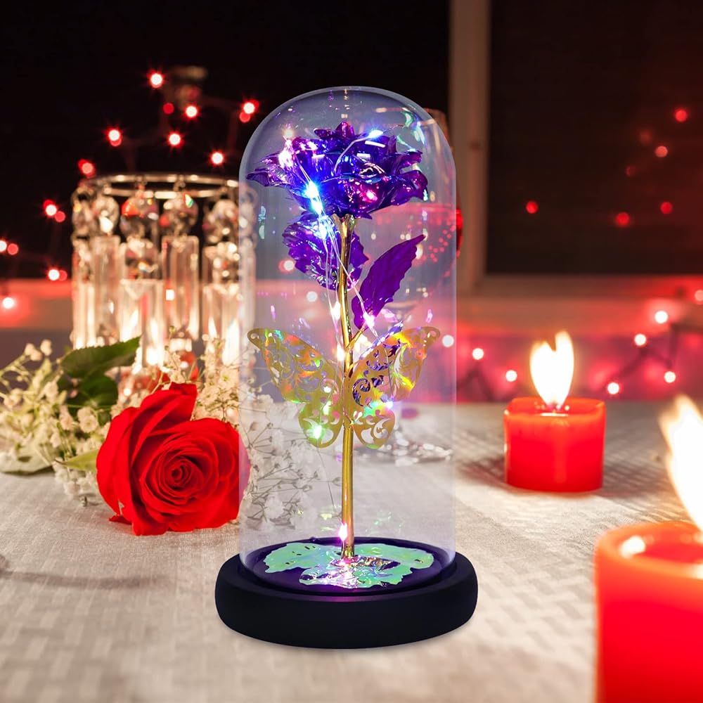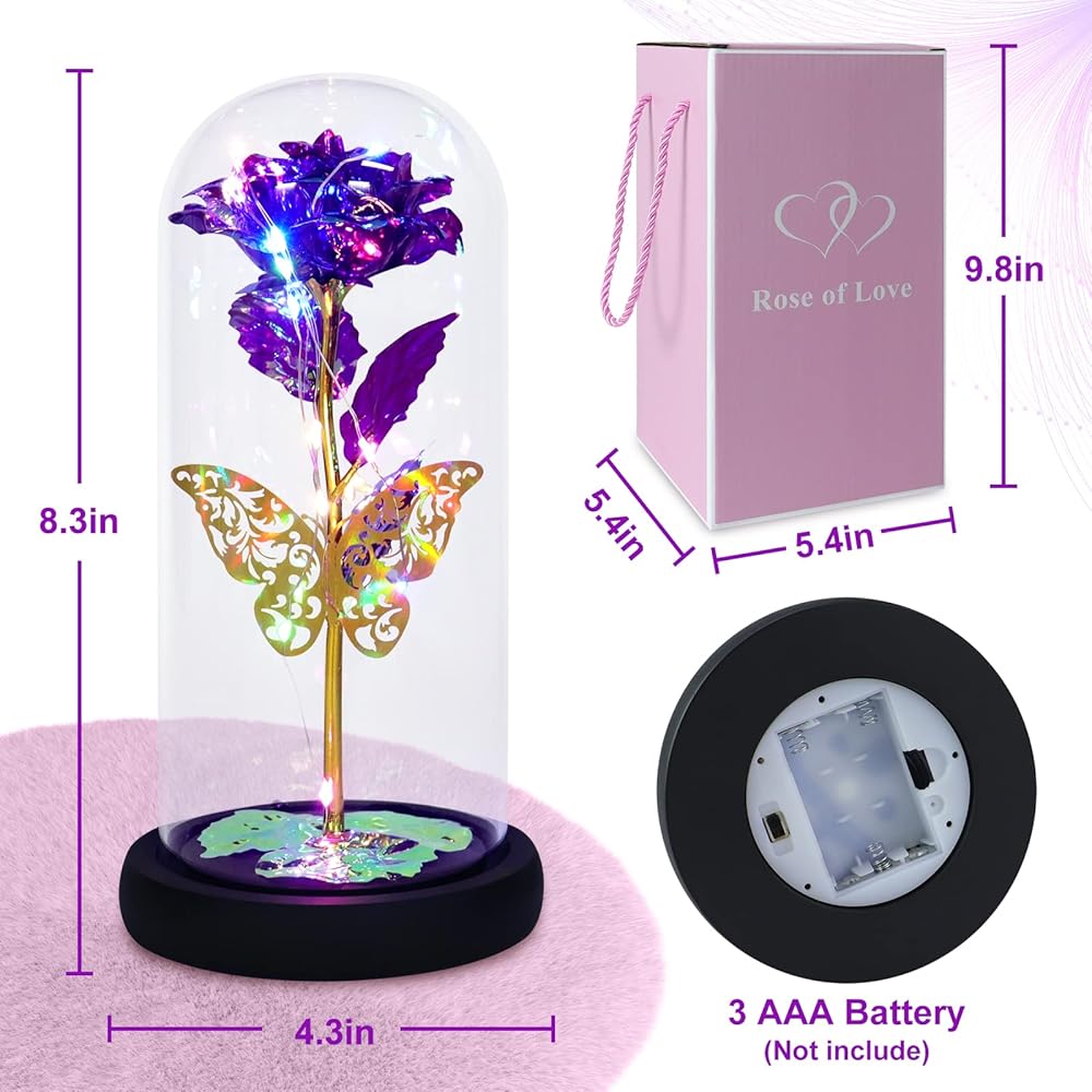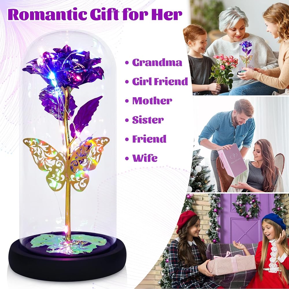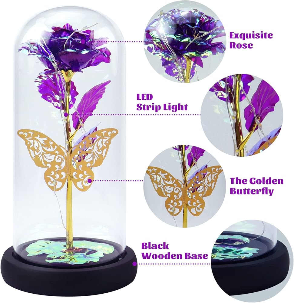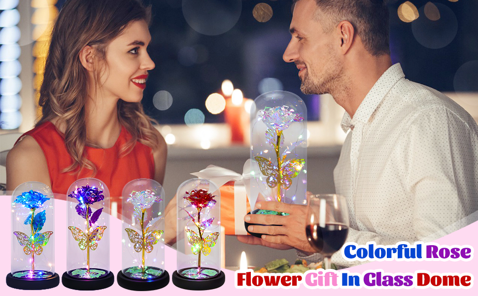 هدايا جالاكسي روز لها، زهرة ورد صناعية ملونة، وردة في قبة زجاجية، هدايا وردة مضيئة للأم والابنة والجدة والزوجة والصديقة، هدية عيد الحب وعيد الميلاد وعيد الميلاد