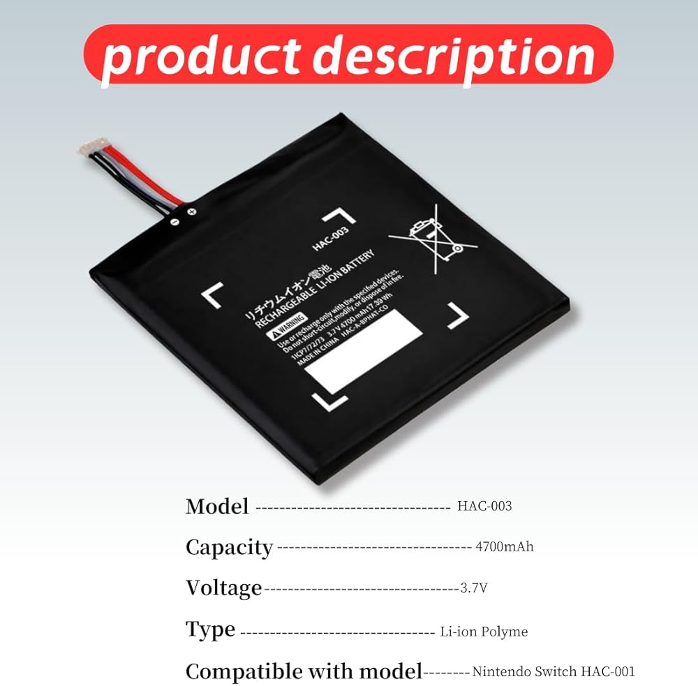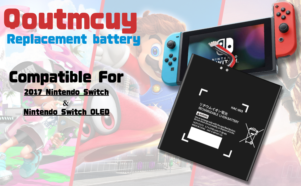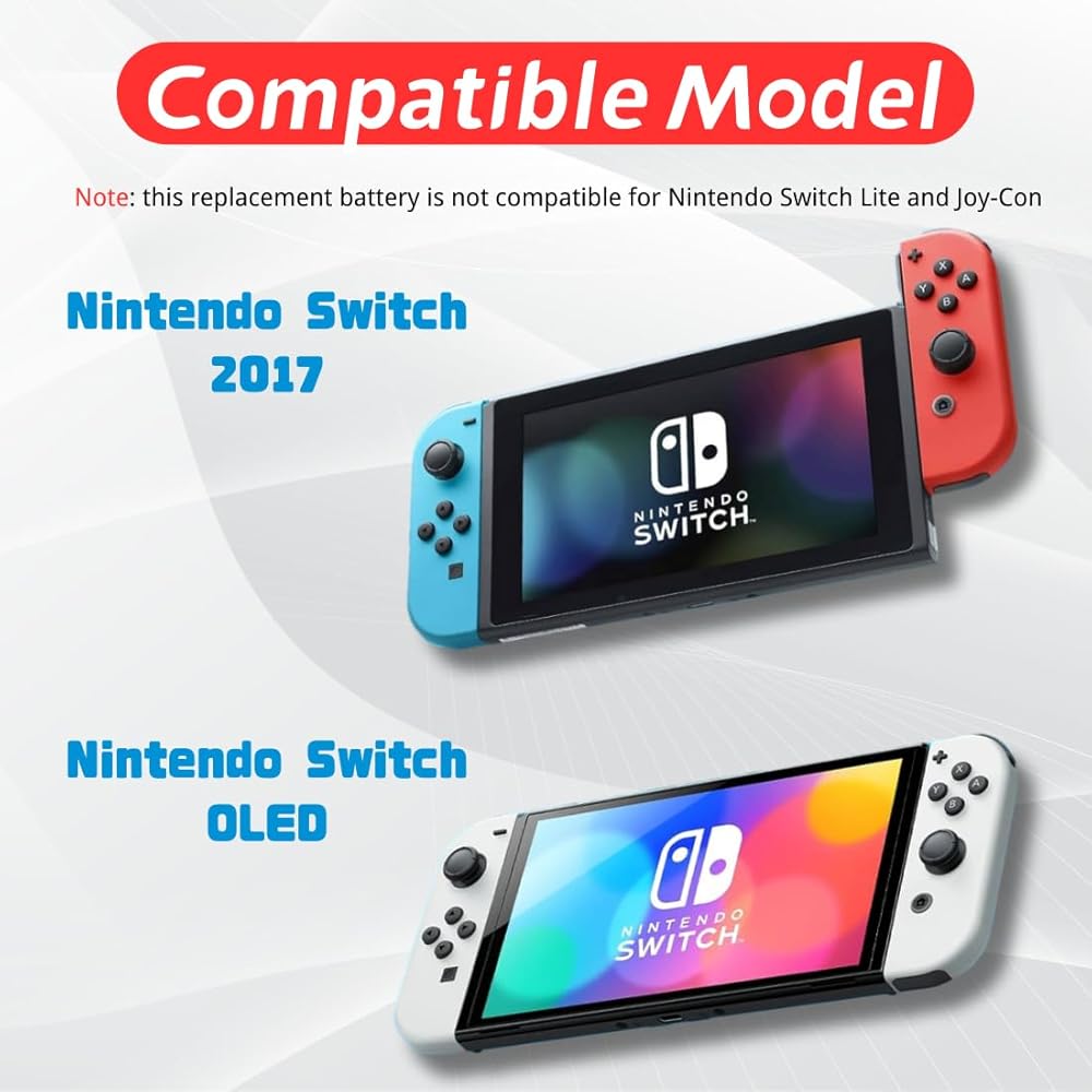 【استبدال بطارية فعالة من حيث التكلفة】بطارية ليثيوم أيون بديلة مطورة من بطارية HAC-003 متوافقة مع وحدة تحكم ألعاب Nintendo Switch وNintendo Switch OLED لعام 2017 (ملاحظة: هذا المنتج غير متوافق مع Nintendo Switch Lite وJoy-Con)