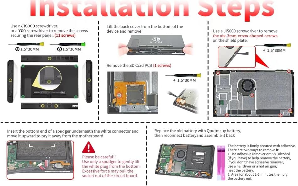 【جودة عالية وأمان】 جودة عالية، لا يوجد تأثير للذاكرة، الشحن الزائد، التفريغ الزائد، الحرارة الزائدة، التيار الزائد وحماية الدائرة القصيرة. يمكنك استخدام بطارية Nintendo Switch البديلة بثقة. (ملاحظة: لا تقم بعكس العملية عند تدوير المسمار، حتى لا تقوم بتلميع المسمار وتتسبب في عدم القدرة على الفتح.)