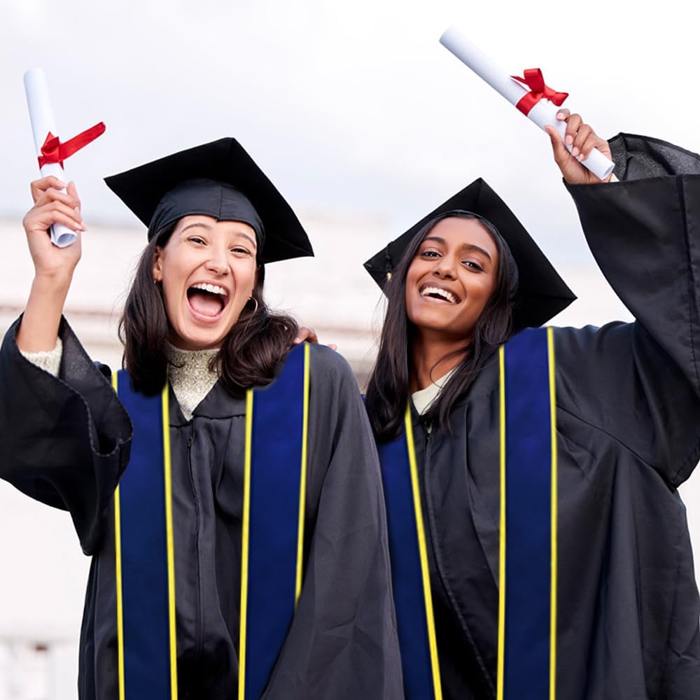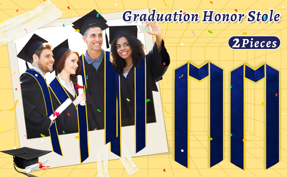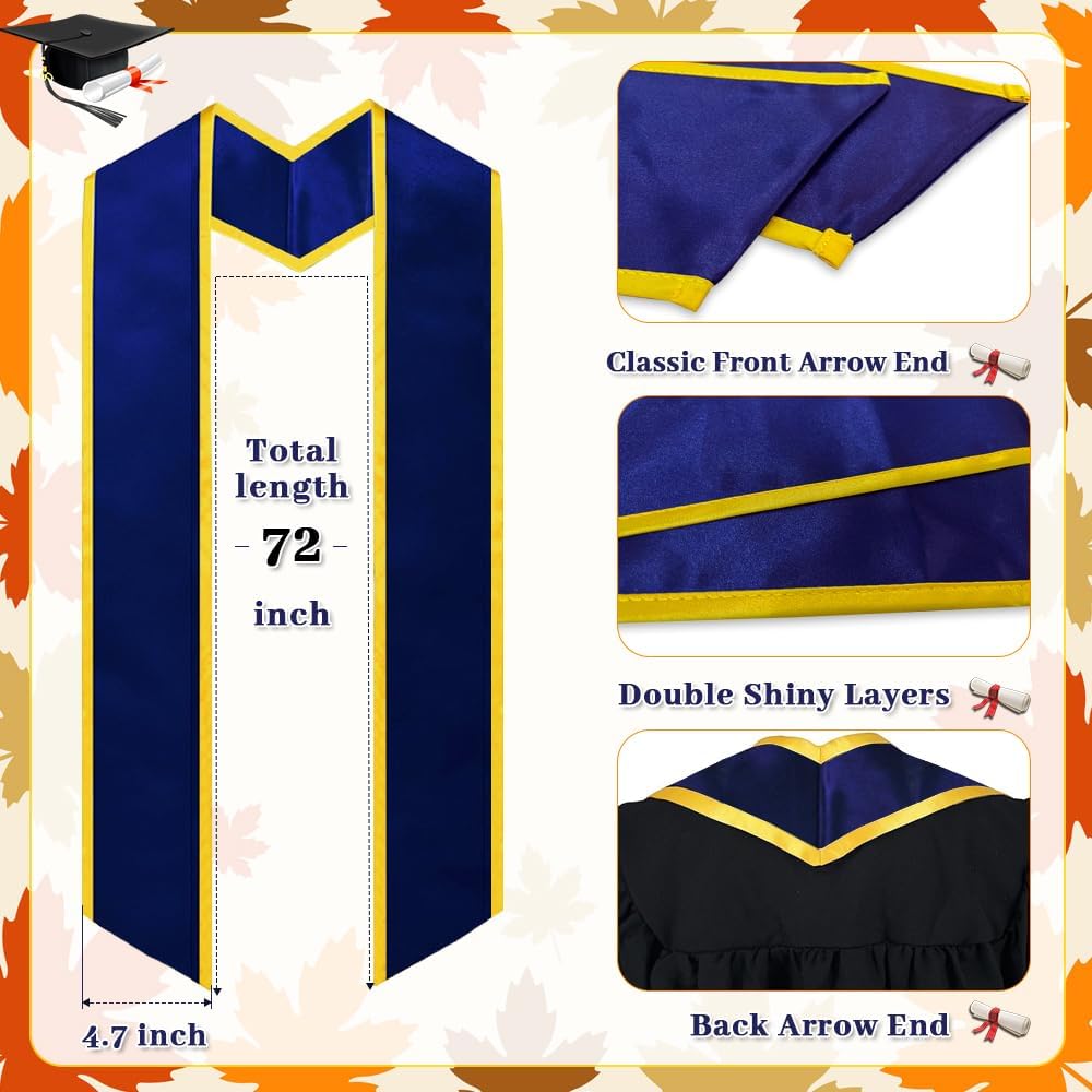 • كمية العبوة - سوف تحصل على قطعتين من شالات الشرف للتخرج، كافية لاستخدامك أو مشاركتها مع زملائك وأصدقائك. تتميز باللون الأزرق الكلاسيكي مع حواف ذهبية، والتي يمكن أن تلبي احتياجات تزيين التخرج الخاصة بك.