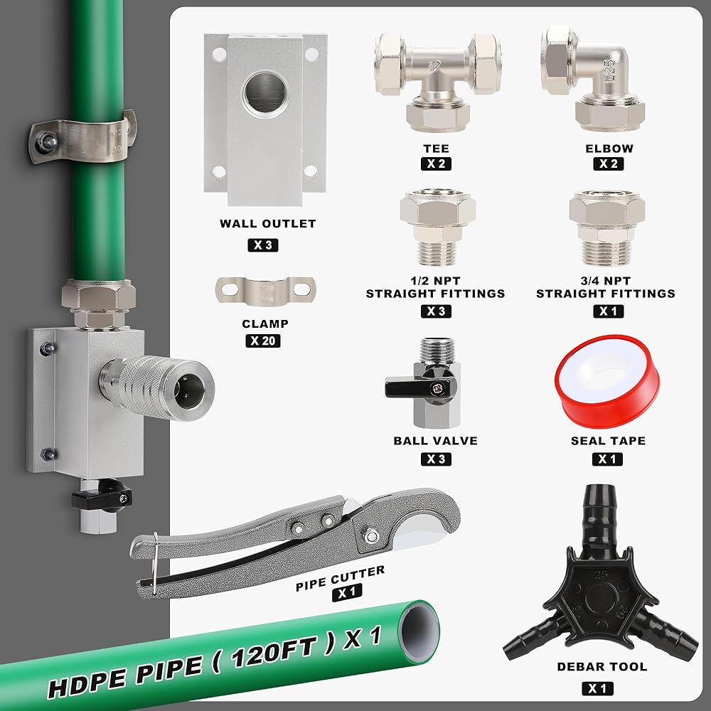 نظام الهواء DIY - 3 كتل منافذ تسمح لك بتصميم وتثبيت نظام الهواء المضغوط الخاص بك. لا مزيد من سحب الضاغط وإعادة توصيل خرطوم الهواء. يساعدك على الحفاظ على غرفة العمل نظيفة ومرتبة.