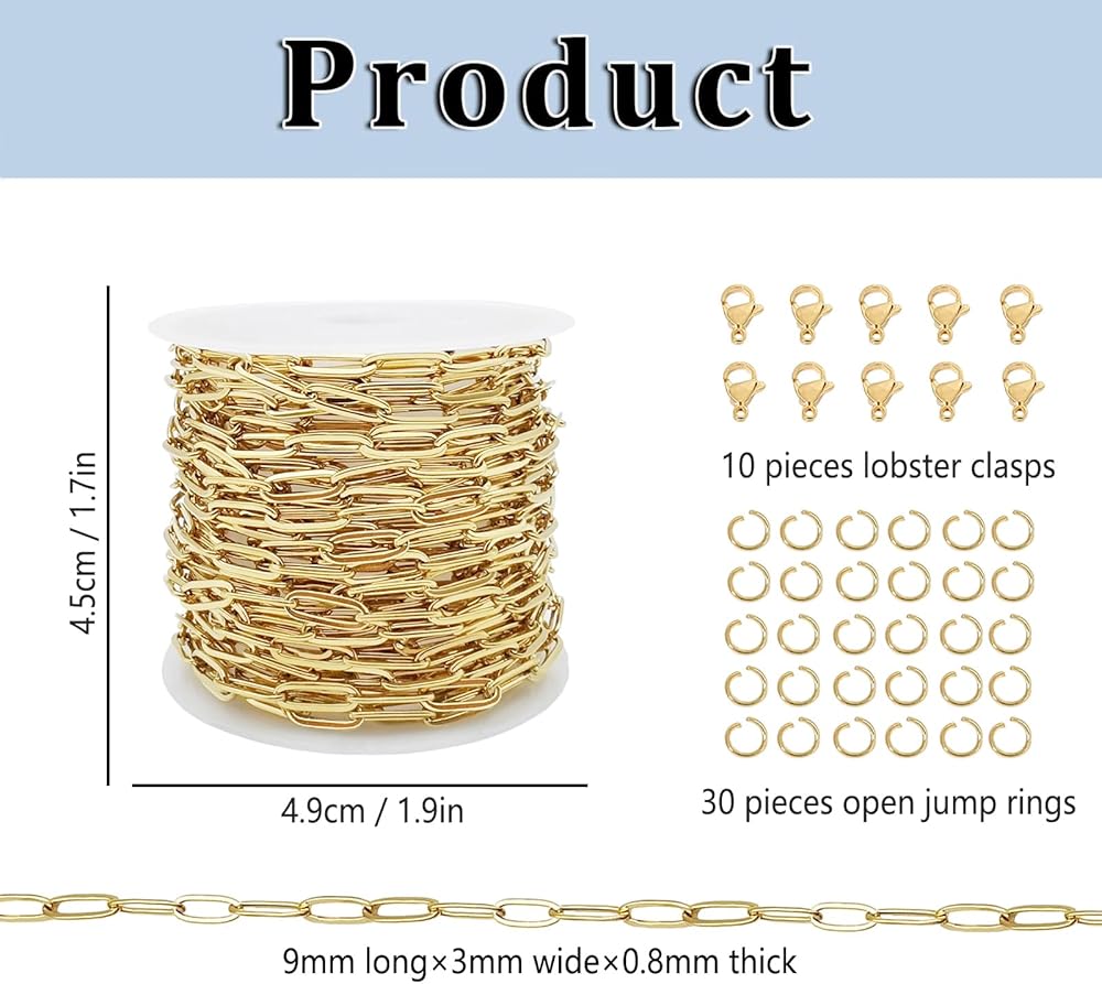 - Package includes: 16.4 feet (5 meters) stainless steel chains, 10 pieces lobster clasps and 30 pieces jump rings.